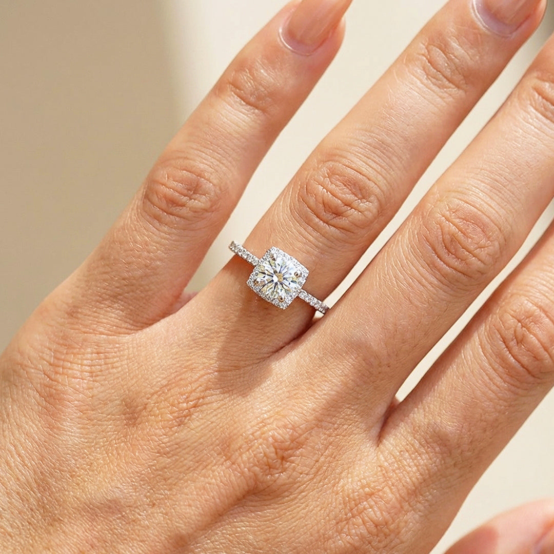 Square Halo Moissanite Ring | 925 Sterling Silver | PRM7125