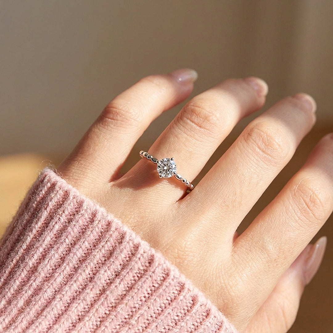 Milgrain Band Moissanite Solitaire Ring | 925 Sterling Silver | PRM7140