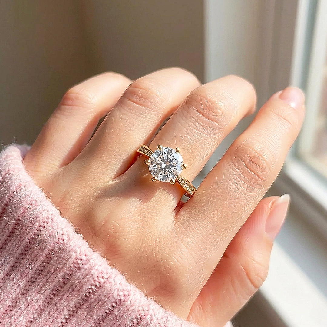 Six Prong Moissanite Solitaire Gold Ring | 925 Sterling Silver | PRM7178