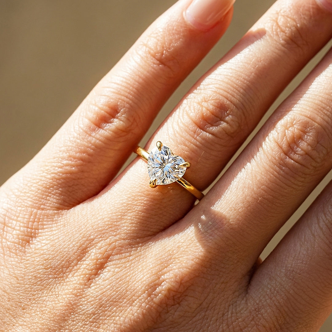 Heart Cut Moissanite Solitaire Gold Ring | 925 Sterling Silver | PRM7181