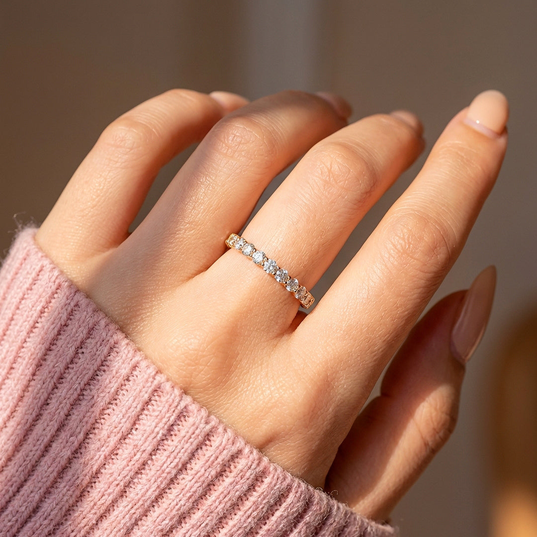 Moissanite Stackable Gold Band Ring | 925 Sterling Silver | PRM7185