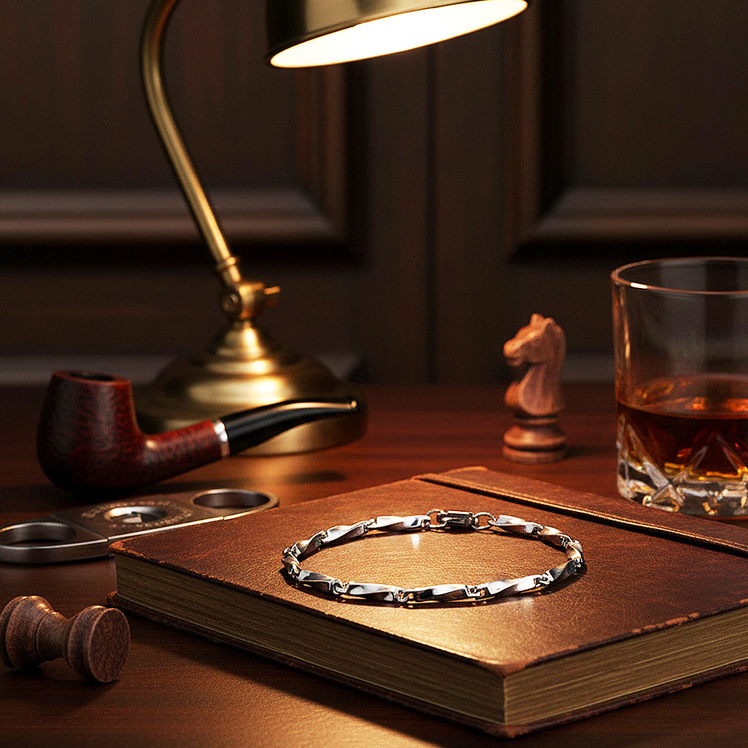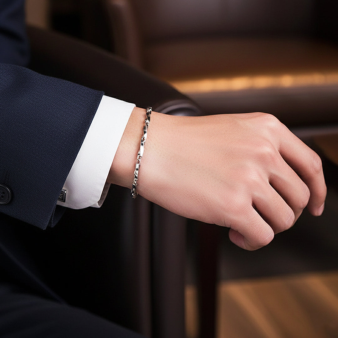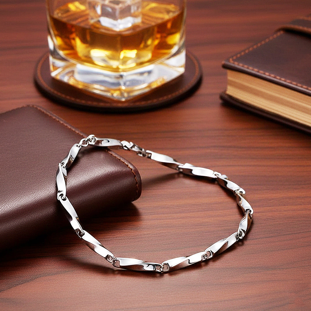 The Metro Sleet Bracelet embodies refined minimalism with a modern masculine edge. Crafted from high-polished titanium steel, each twisted link captures and reflects light with sharp precision, creating a sleek metallic shimmer that stands out effortlessly. The geometric silhouette offers a sophisticated, clean-lined look—perfect for both executive styling and everyday wear.