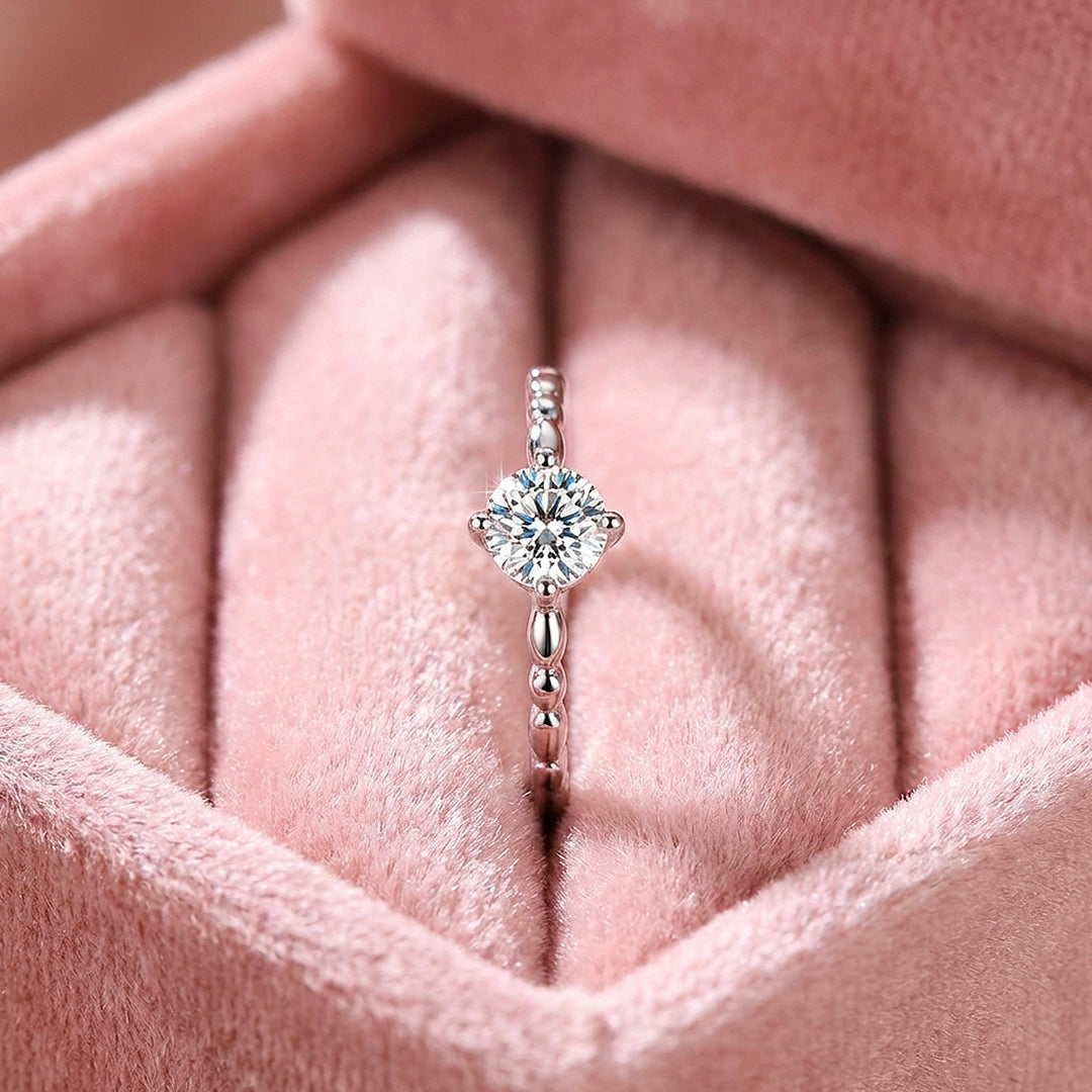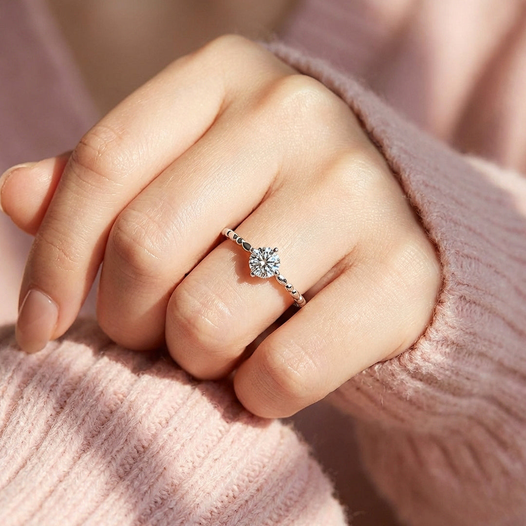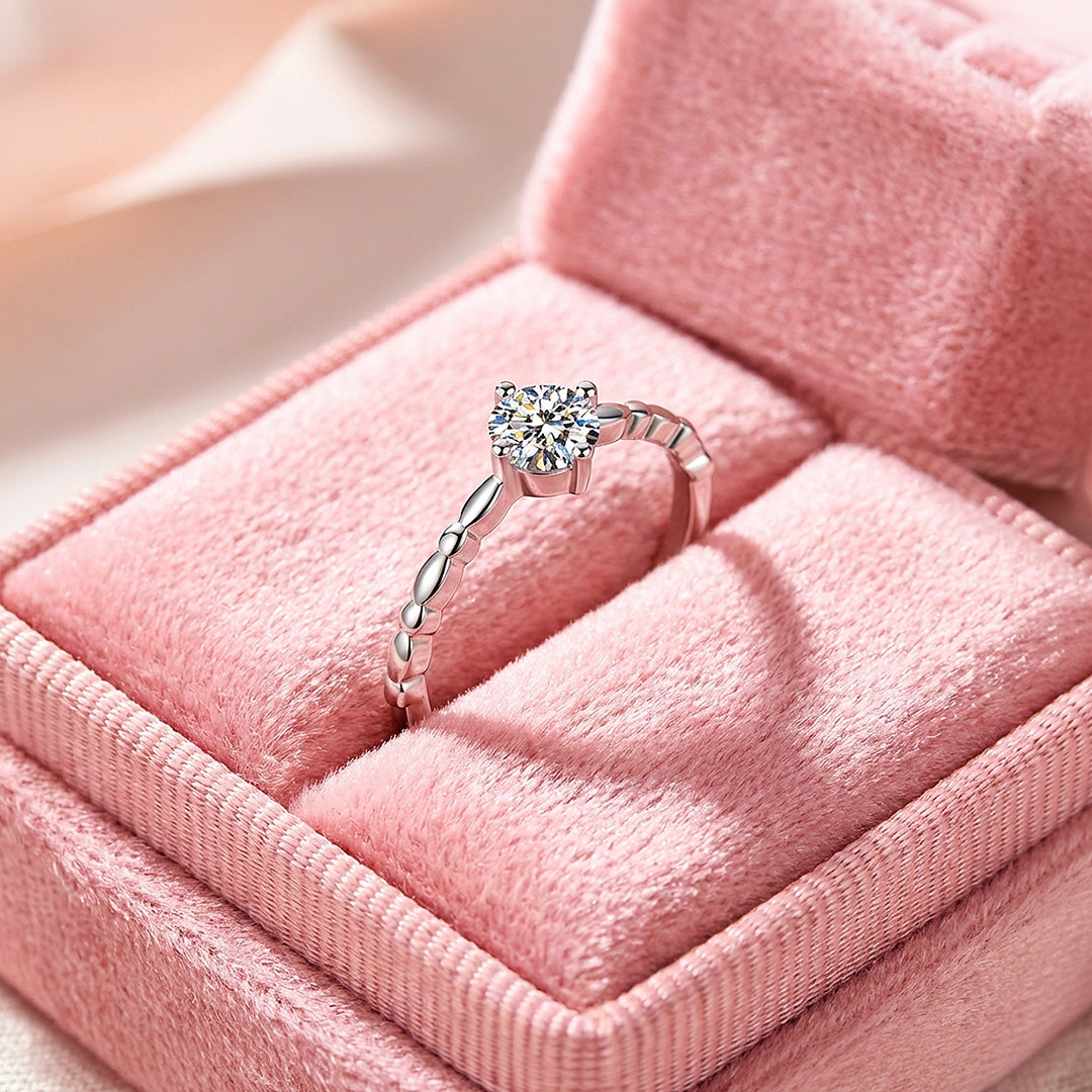 Sometimes the simplest designs are the hardest to pull off well — and PRM7140 gets it right. A 0.5 carat Moissanite sits in a six-prong setting above a delicate milgrain band, where the fine textured edging runs the full circumference of the ring adding quiet vintage character. No pavé, no accent stones — just refined metalwork and a stone that speaks for itself. The kind of ring that stacks beautifully, wears effortlessly, and never feels out of place regardless of the occasion.