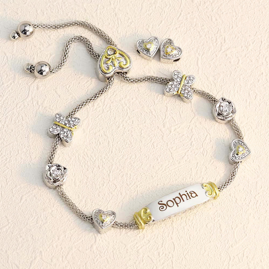 Luxe6082 - Rose Heart & Swan Charm Bracelet