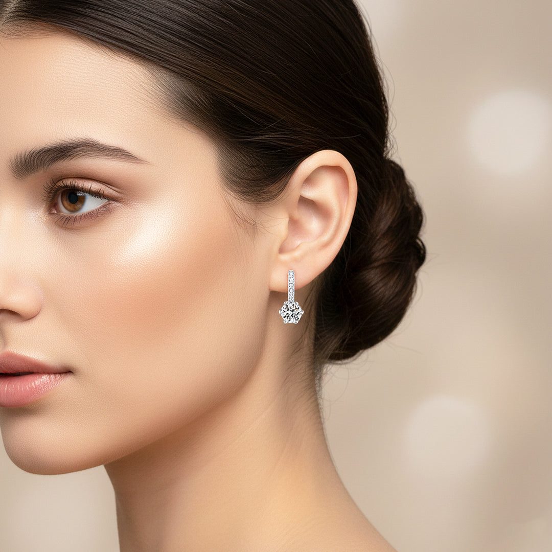 The Luxe3628 Earrings are designed for those who gravitate toward timeless beauty with an unmistakable touch of glamour. Each earring features an exquisite 0.75-carat AAAAA zircon solitaire—cut to perfection to deliver diamond-like brilliance from every angle. The hoop is delicately paved with shimmering stones, creating an elevated, refined silhouette that catches light effortlessly.