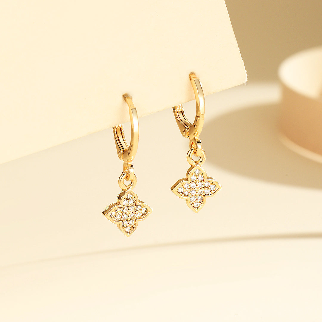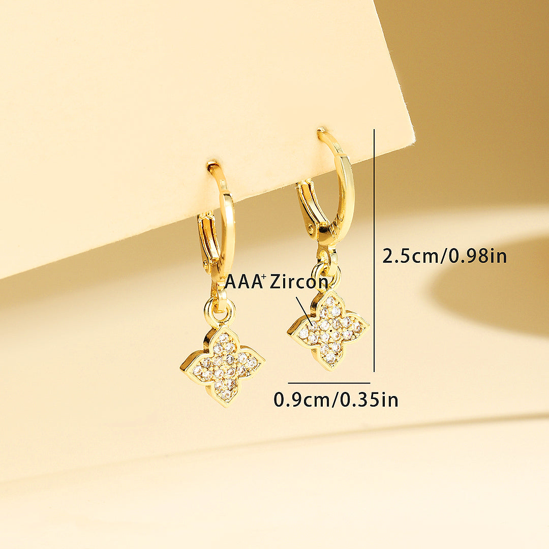 Radiating elegance and refined sparkle, the Luxe3629 Earrings are designed for women who love timeless sophistication with a touch of modern luxury. Each pair features a dainty floral-inspired charm, meticulously paved with premium AAAAA zircon that catches the light from every angle—creating a soft yet captivating brilliance. Suspended from sleek mini-hoop huggies and finished in your choice of White Gold Plating or Gold Plating, these earrings add a graceful movement and a luminous glow to any look.