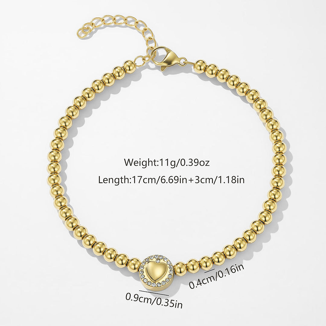 Charming and feminine, the Luxe6479 Heart Halo Luxe Bracelet is designed to add a touch of elegance to your every move. Featuring a polished string of gold-toned beads, the bracelet is beautifully highlighted by a centrepiece heart charm framed in a halo of dazzling cubic zirconia. The result is a beautifully balanced design that feels both timeless and playful — ideal for wearing solo or stacking with your favourite wrist pieces.