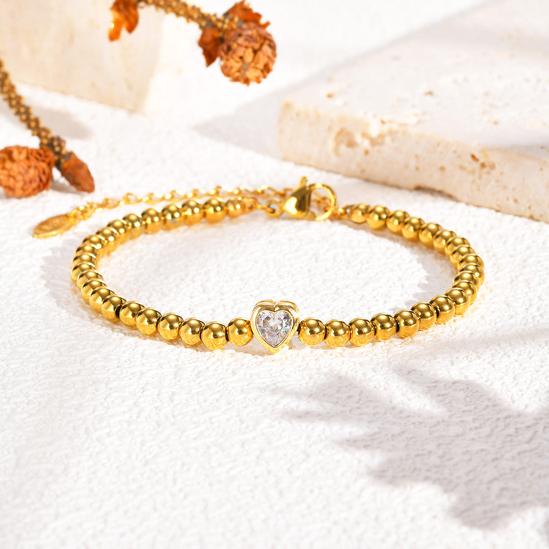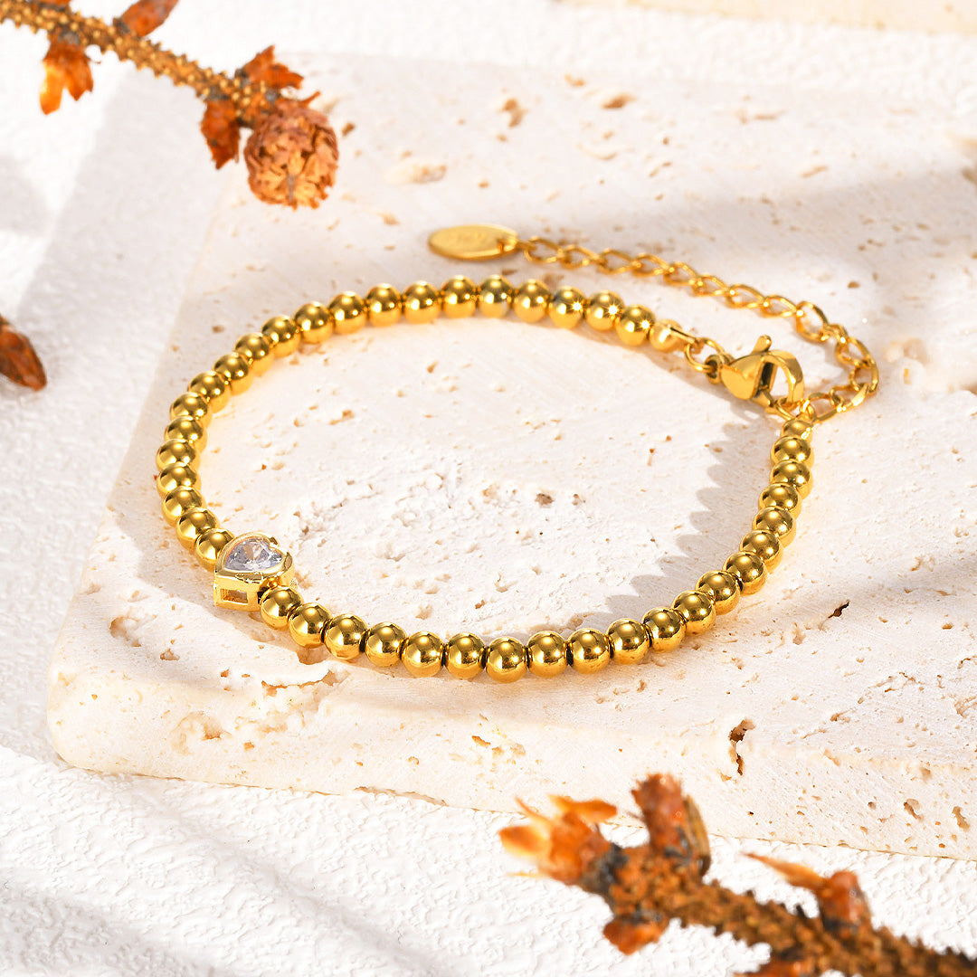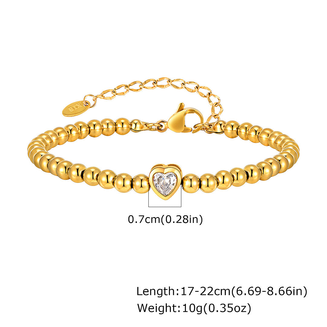 Romantic and radiant, the Luxe6494 Golden Heart Luxe Bracelet features a delicate string of polished golden beads, beautifully accented with a heart-shaped cubic zirconia centerpiece. The 5A-grade zirconia glimmers with diamond-like brilliance, bringing a touch of love and light to every movement.
