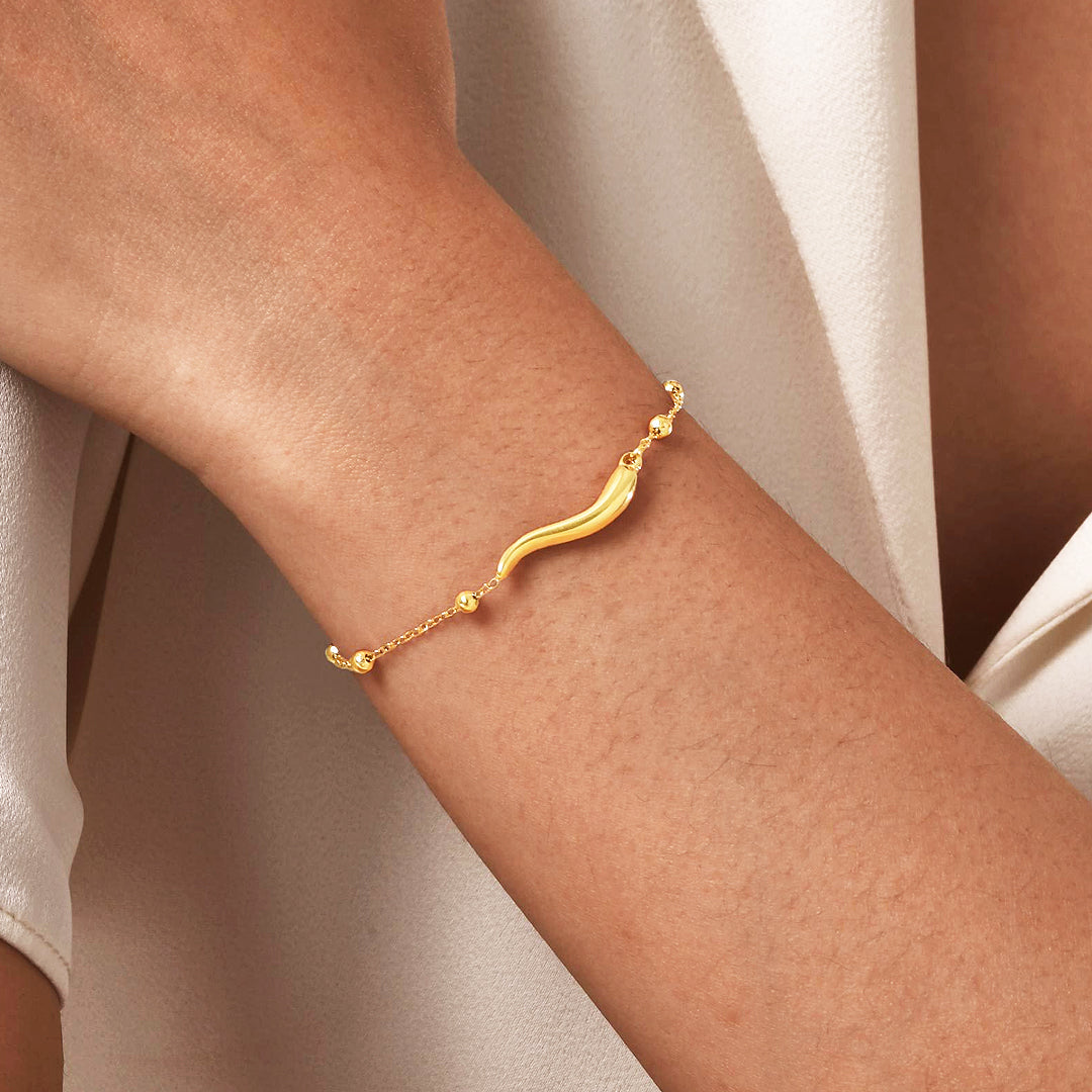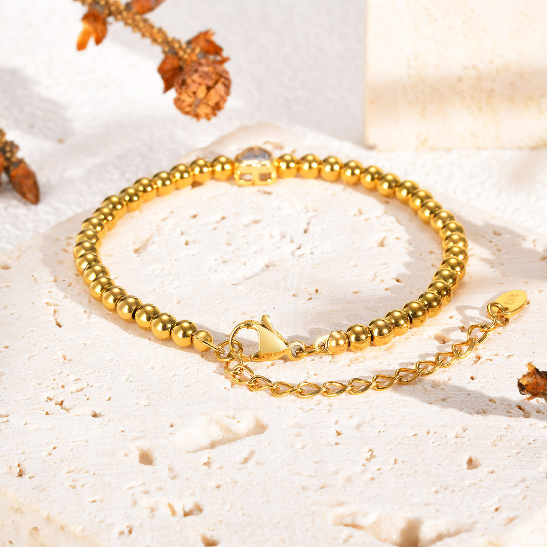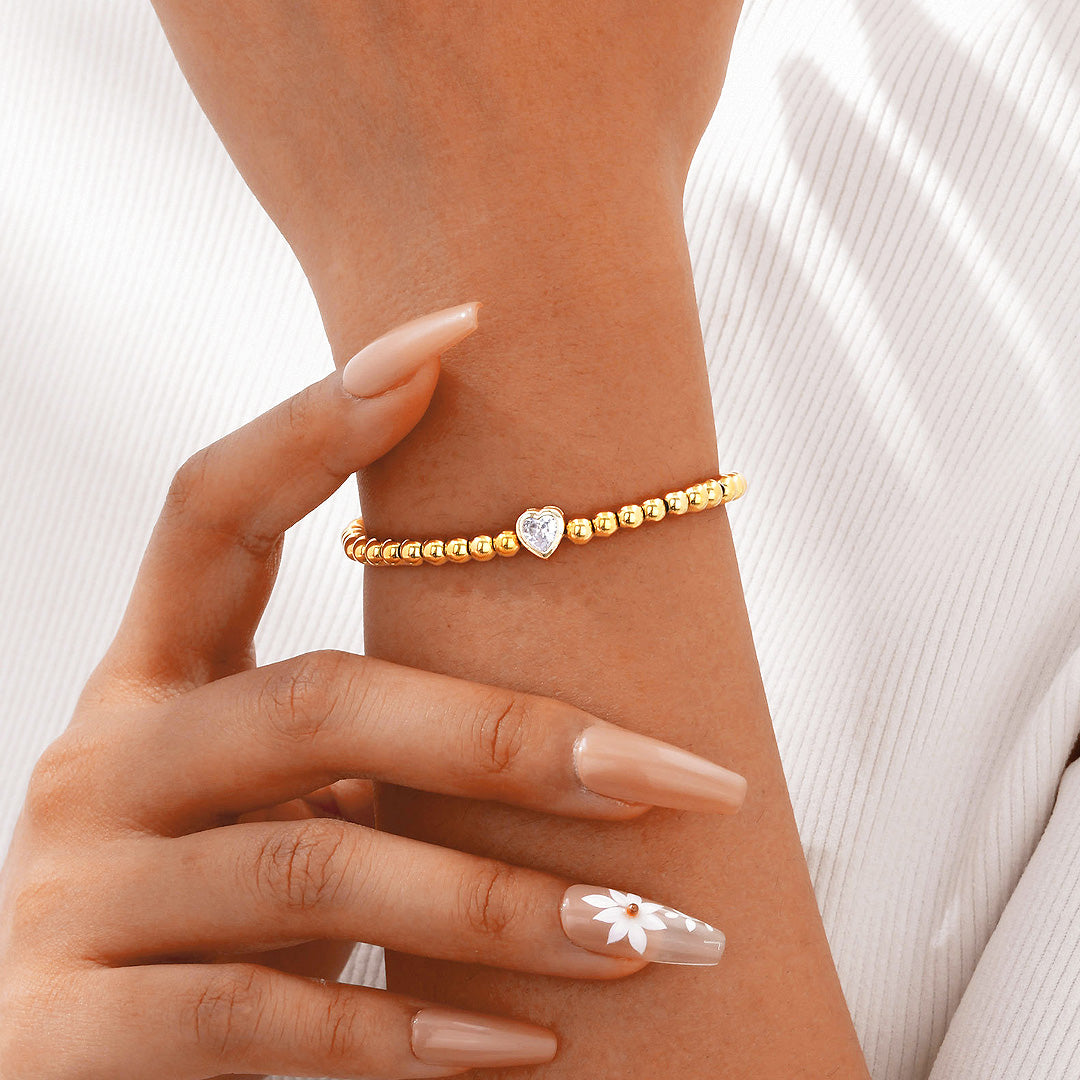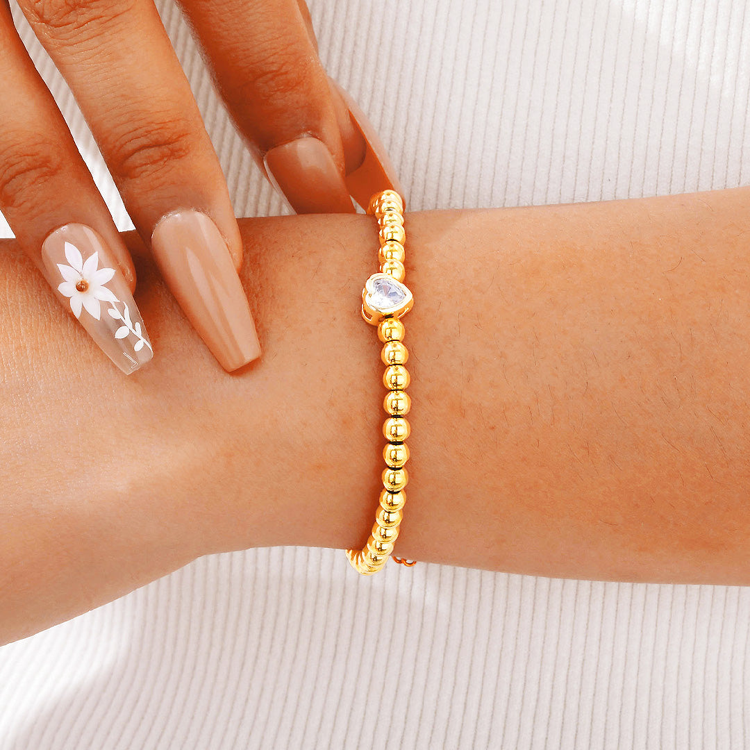 Romantic and radiant, the Luxe6494 Golden Heart Luxe Bracelet features a delicate string of polished golden beads, beautifully accented with a heart-shaped cubic zirconia centerpiece. The 5A-grade zirconia glimmers with diamond-like brilliance, bringing a touch of love and light to every movement.
