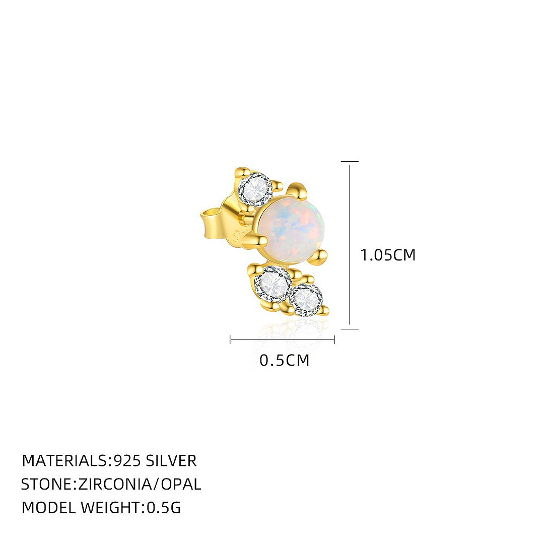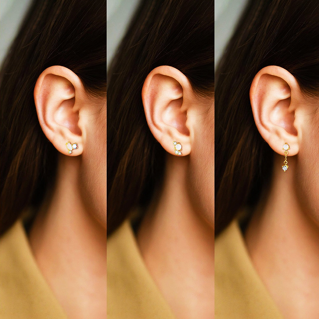 • Design 1 (Asymmetrical Stud): Features a marquise-cut opal beautifully paired with a round opal and a single brilliant zirconia, creating a dynamic, clustered look.