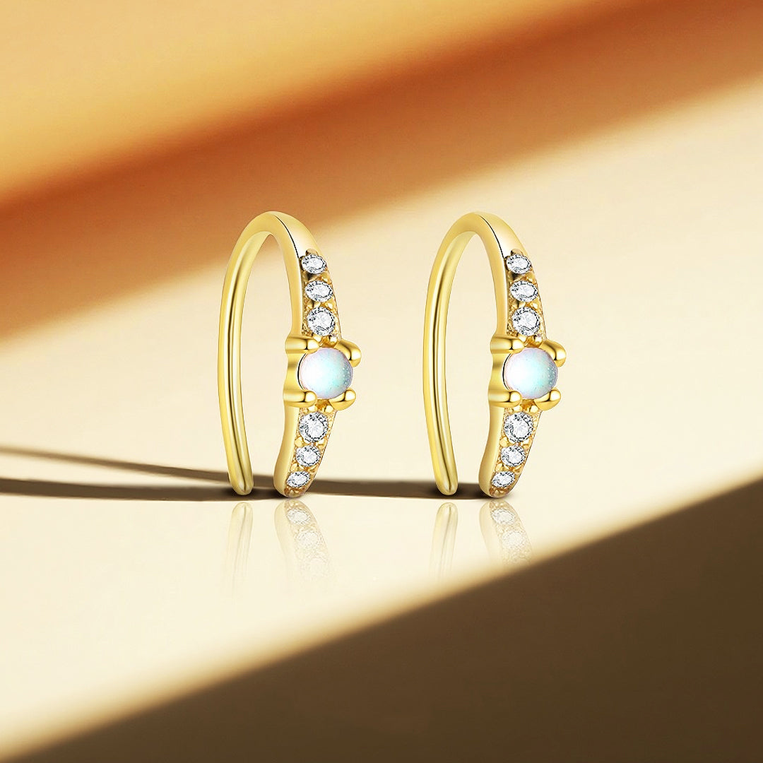 Unlock the ethereal beauty of the night sky with the Luxe3621 Celestial Opal Duet Collection. Each of the four unique designs beautifully merges the soft, shifting iridescence of genuine-look Synthetic Opal with the intense, diamond-like fire of AAAAA Cubic Zirconia. Finished in a luminous 18K Gold tone via a robust five-layer electroplating process, these earrings are exquisite miniatures of celestial artistry.