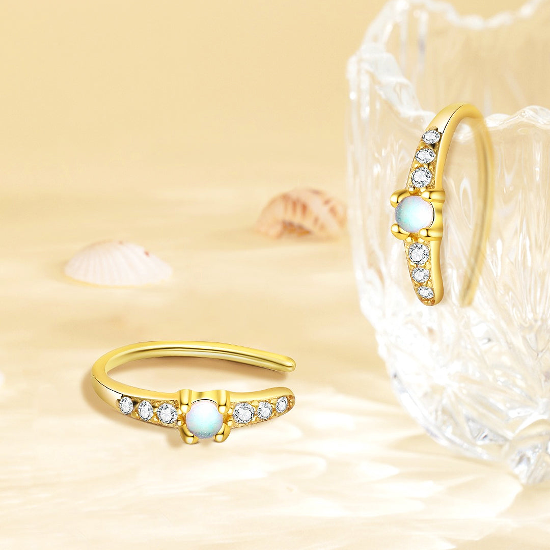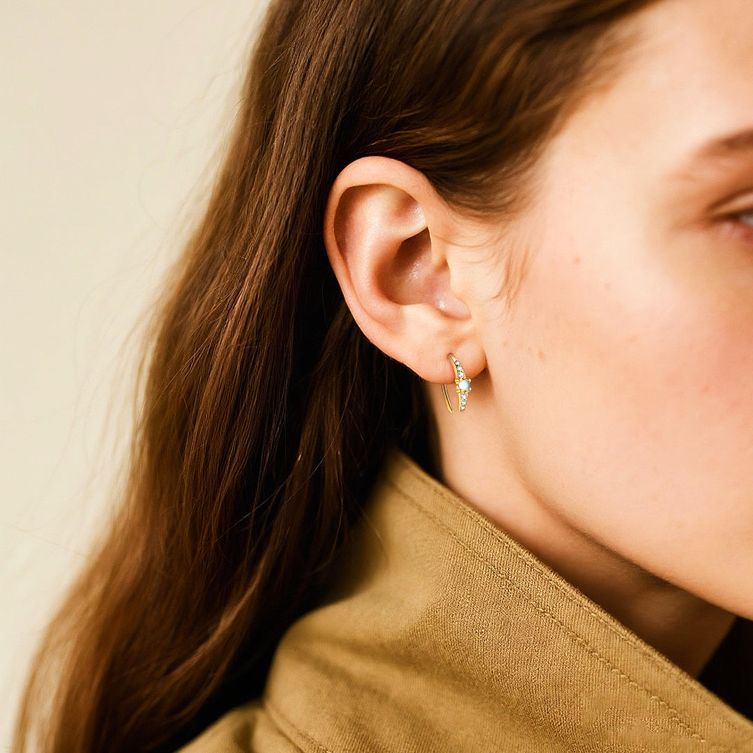 The seamless, secure fit of the huggie design makes them perfect for continuous wear, yet their refined combination of mystical opal and brilliant zircon makes them instantly eye-catching. These earrings are an irresistible statement of modern, everyday luxury, offering a perfect blend of captivating color and dazzling, high-quality sparkle.