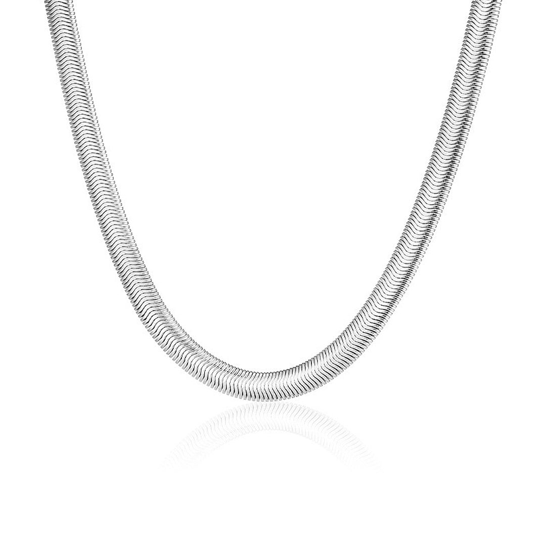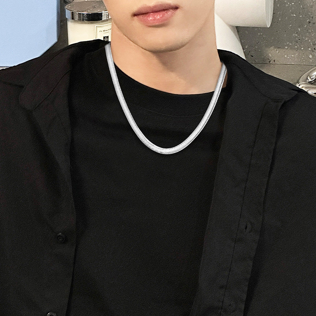 Refined and effortlessly stylish, the MN1060 Sleek Herringbone Luxe Necklace features a fluid, high-shine herringbone chain that lies flat against the skin, catching the light with every movement. Minimalist yet striking, this versatile piece is designed to elevate any look—from casual streetwear to tailored evening fits.