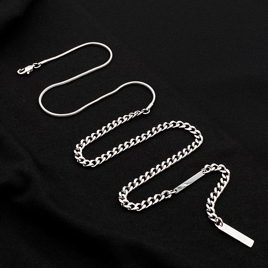 Unique Dual Design: A bold fusion of snake and curb chains for modern asymmetry.