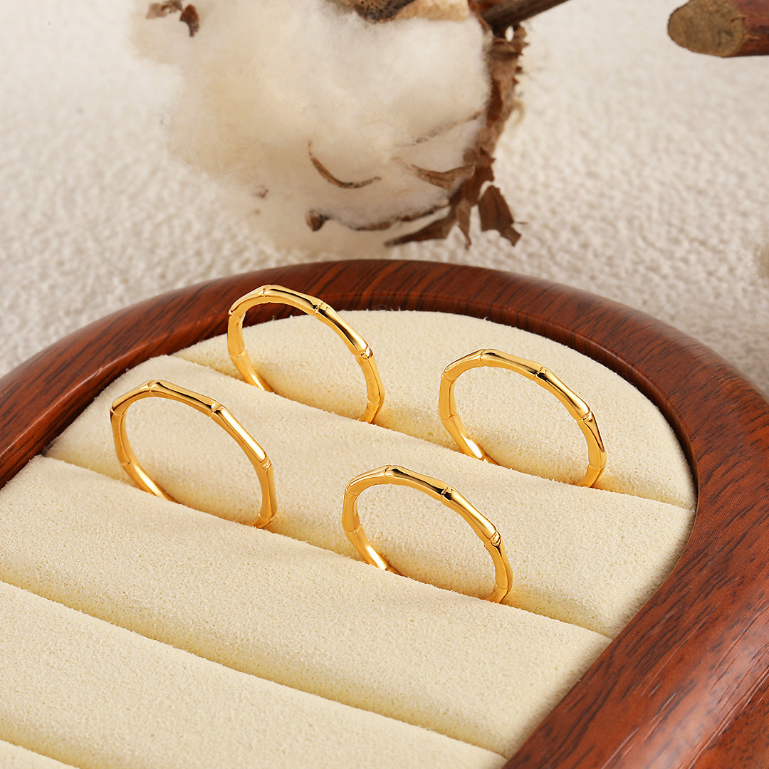 Design: Bamboo-inspired textured band for a natural, minimalist charm