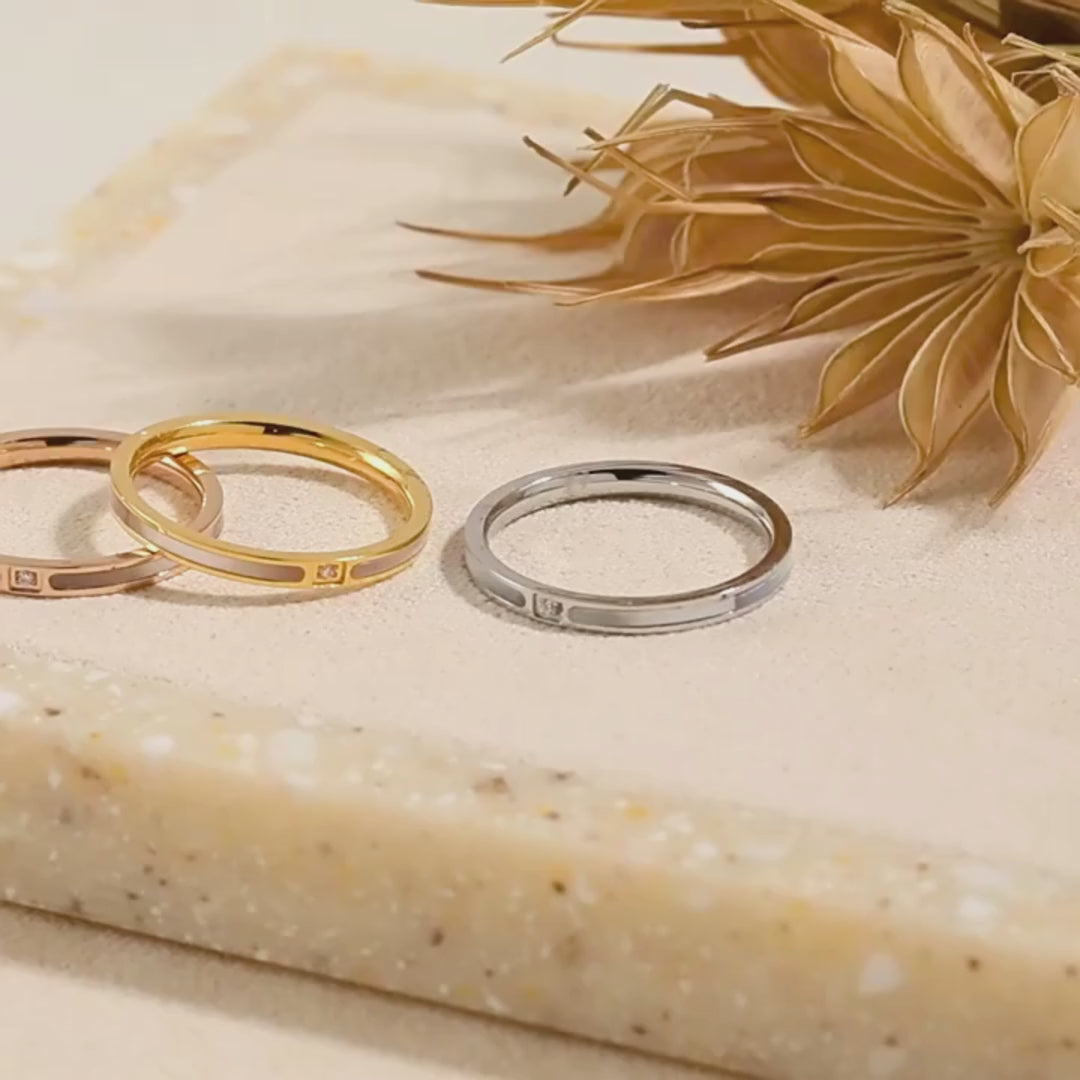 Refined and versatile, the Luxe5127 Ring is the perfect everyday piece that transitions seamlessly from casual wear to sophisticated evenings. Crafted in high-quality titanium steel, it is designed to offer lasting brilliance while remaining incredibly easy to care for. With a sleek band enhanced by an iridescent enamel inlay and a single sparkling stone detail, this ring strikes the perfect balance between understated charm and modern luxury.