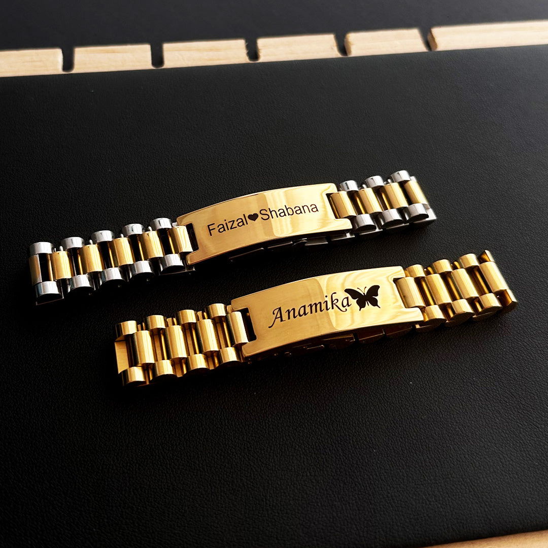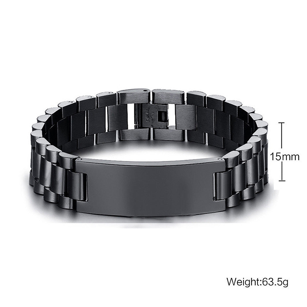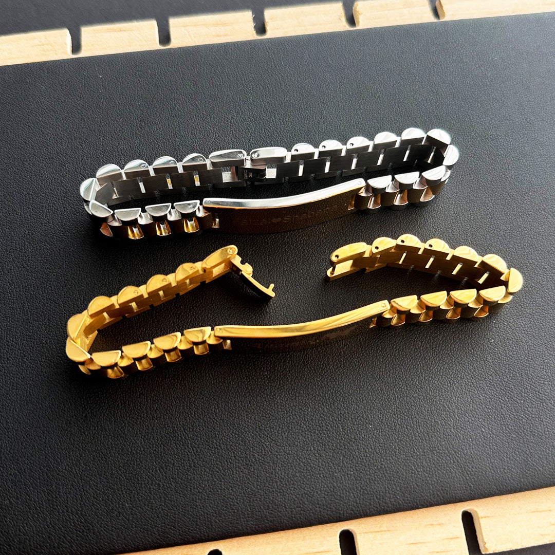 Commemorate a special bond or personal motto with the Luna - 1004 Custom ID Bracelet. This bold and masculine piece features a classic watch-band style chain and a sleek, engravable plate, creating a statement accessory that is as meaningful as it is stylish.