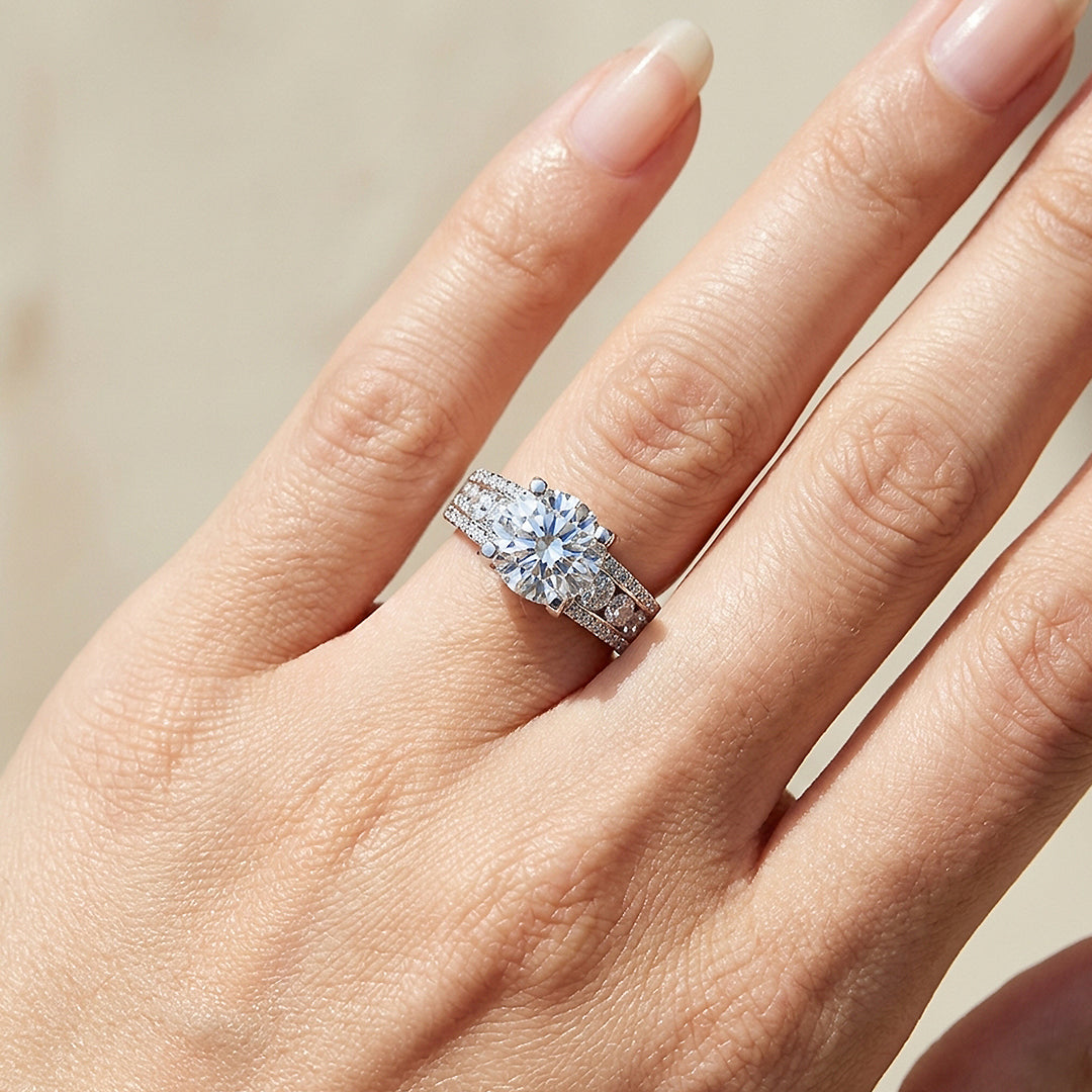 • Center Stone: Genuine Moissanite — D Colour, VVS1 Clarity, Round Brilliant, 1ct