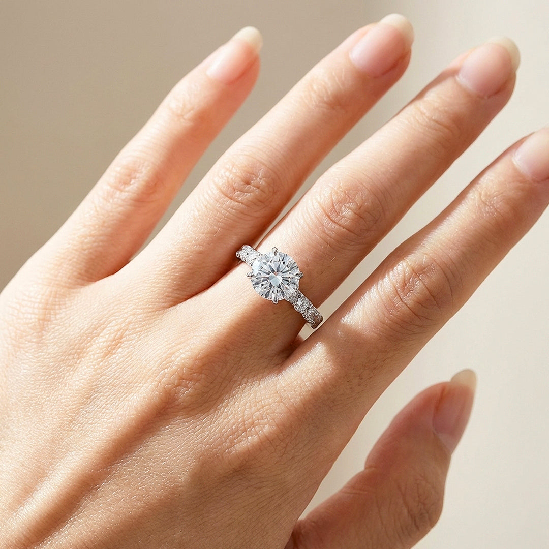 - Center Stone: Genuine Moissanite — D Colour, VVS1 Clarity, Brilliant Cut, 0.5ct