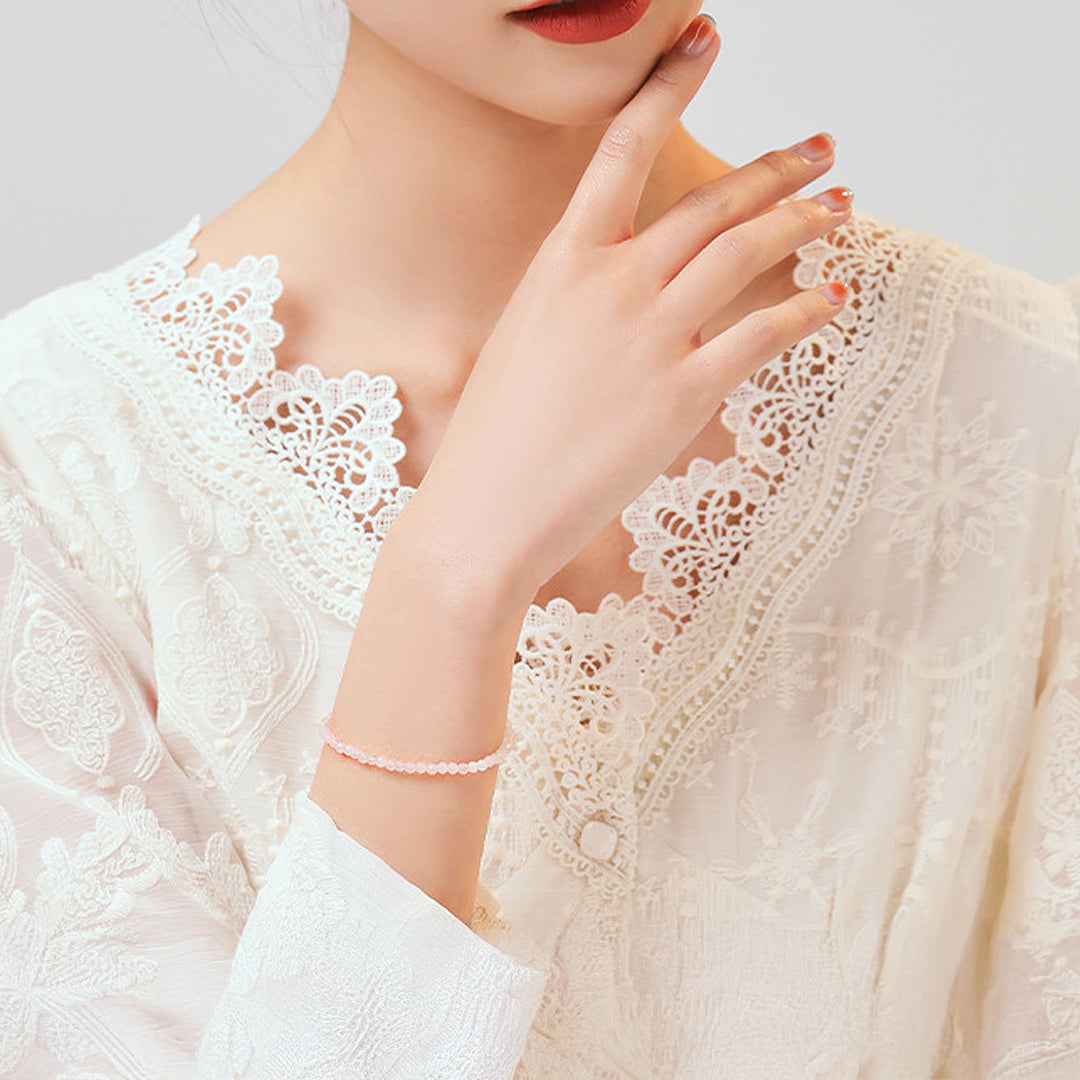 Delicate and full of loving energy, the Rose Quartz Bracelet (3mm) is a timeless expression of softness, grace, and inner peace. Made with high-quality 3mm faceted rose quartz beads, this bracelet adds a gentle pink glow to your look—perfect for daily wear or layered with other pieces for a romantic touch.