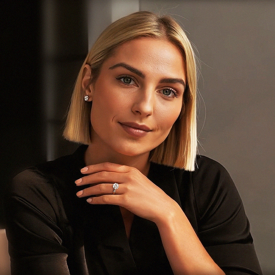 Gemstone: Moissanite (D Colour, VVS1 Clarity) – exceptional brilliance and fire