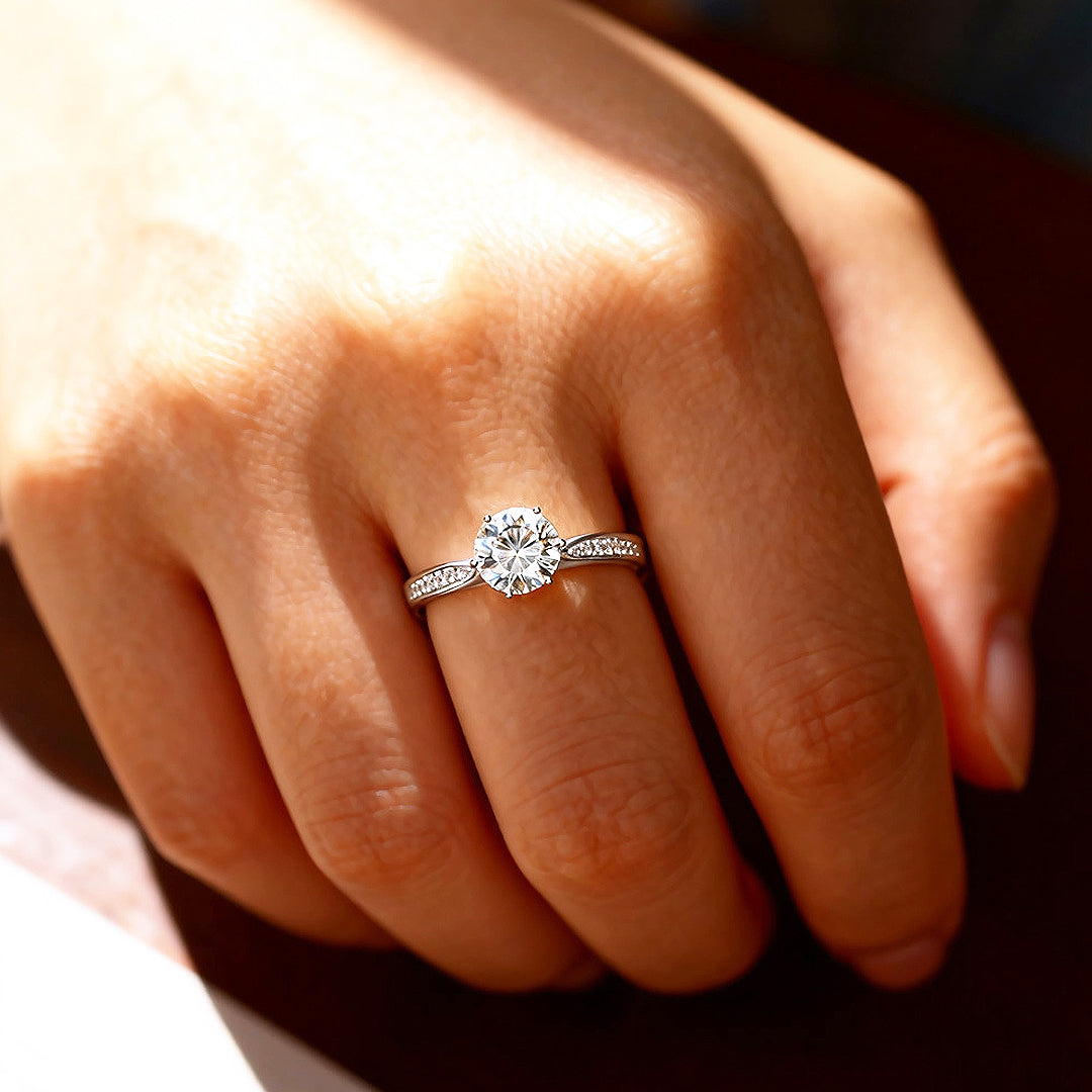 • Moissanite (D Colour, VVS1 Clarity) – exceptional brilliance & fire