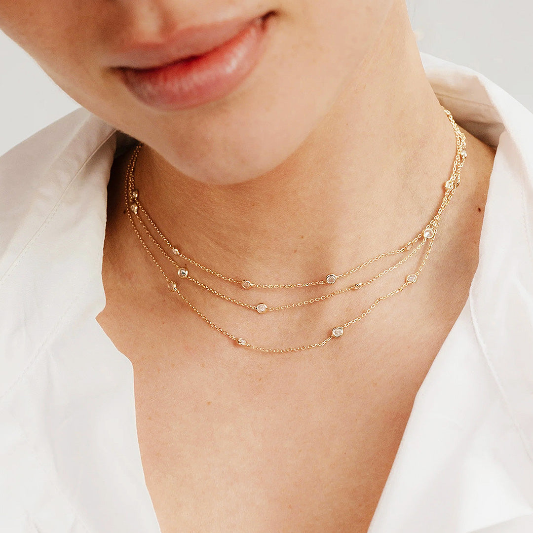 • Design: Triple-layer chain with crystal accents for a sparkling yet refined look
