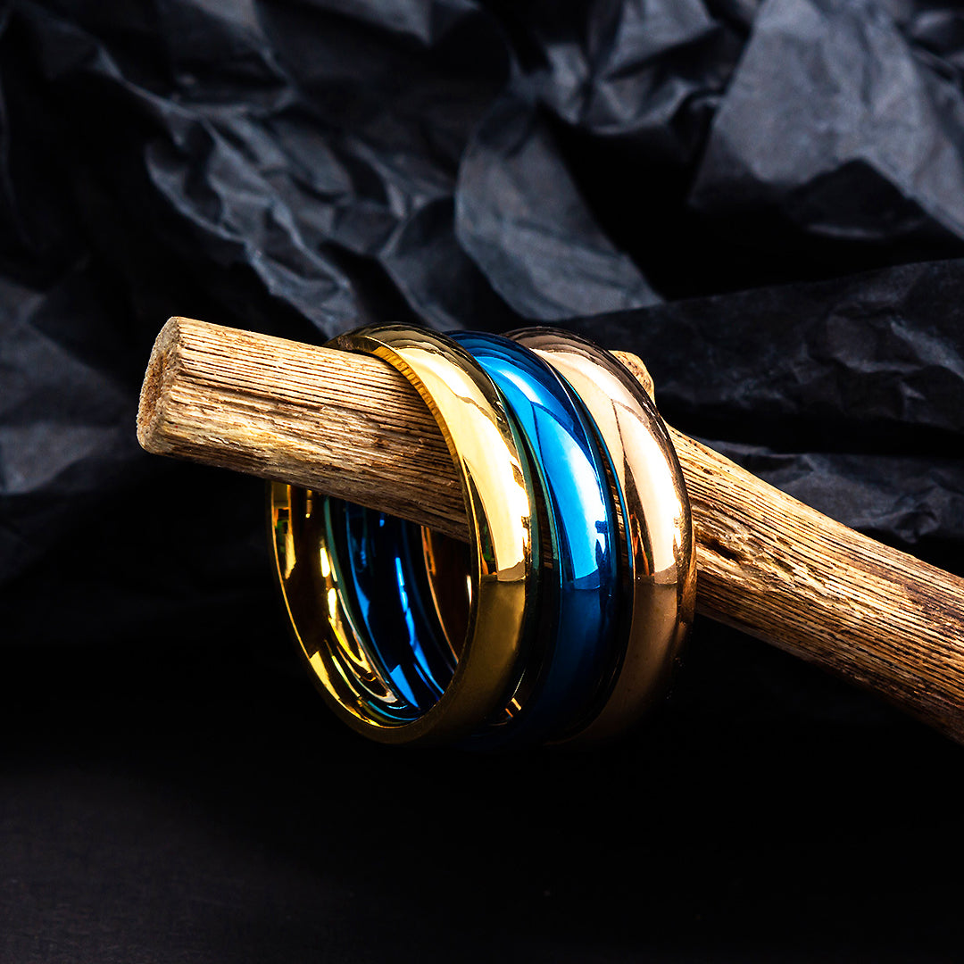 The Classic Band embodies simplicity and versatility. Its sleek, domed profile and smooth, highly polished surface ensure a comfortable fit and a lustrous shine that catches the light beautifully. Available in five captivating colors, each band is a testament to understated elegance: