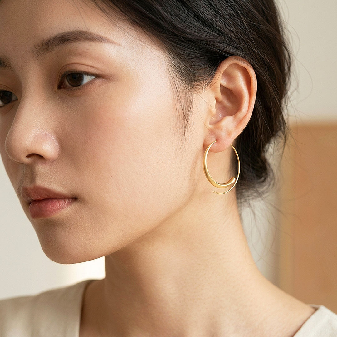 - Fluid Crescent Profile: The gradual taper gives each hoop a natural, crescent-like curvature that moves beautifully and catches light across its varying width.