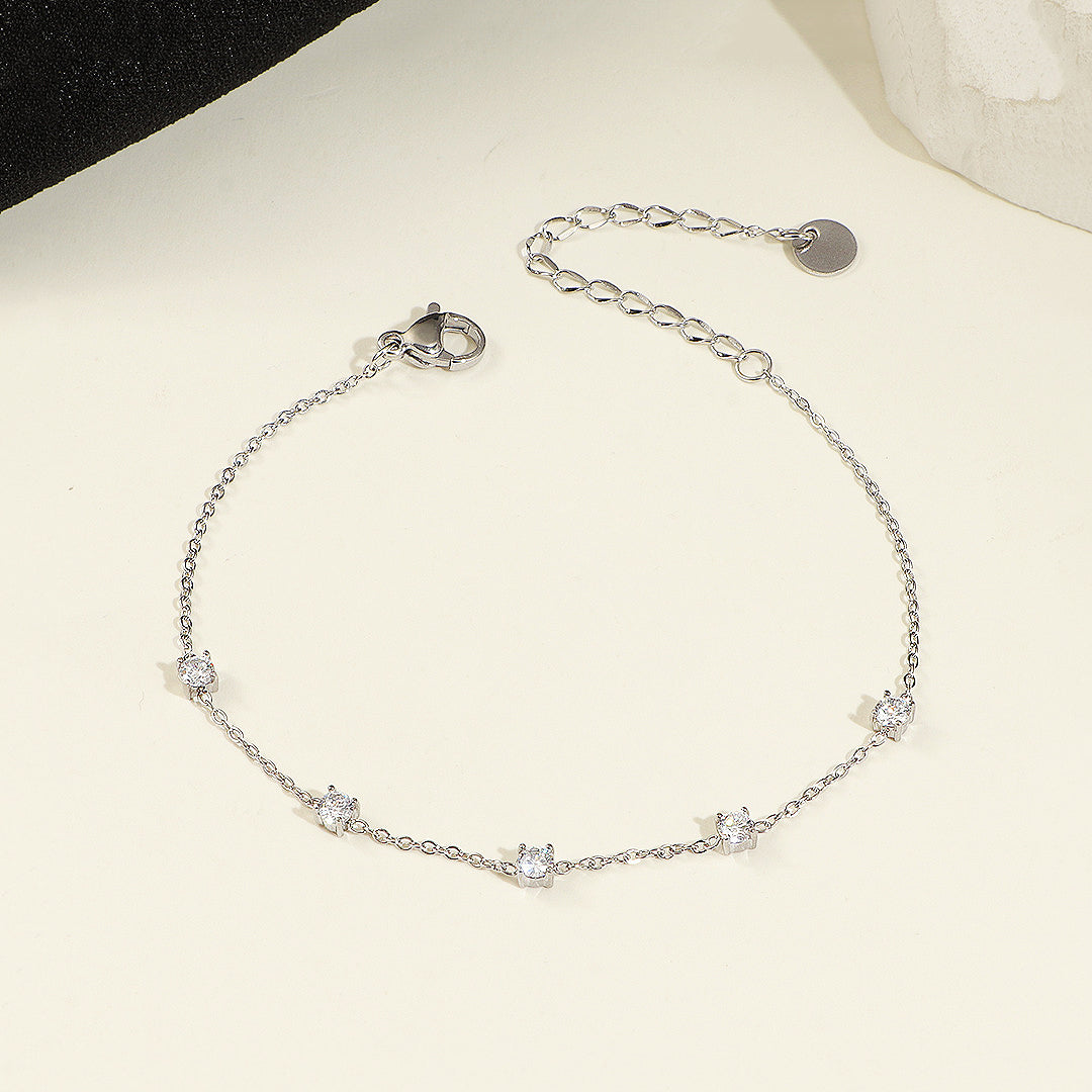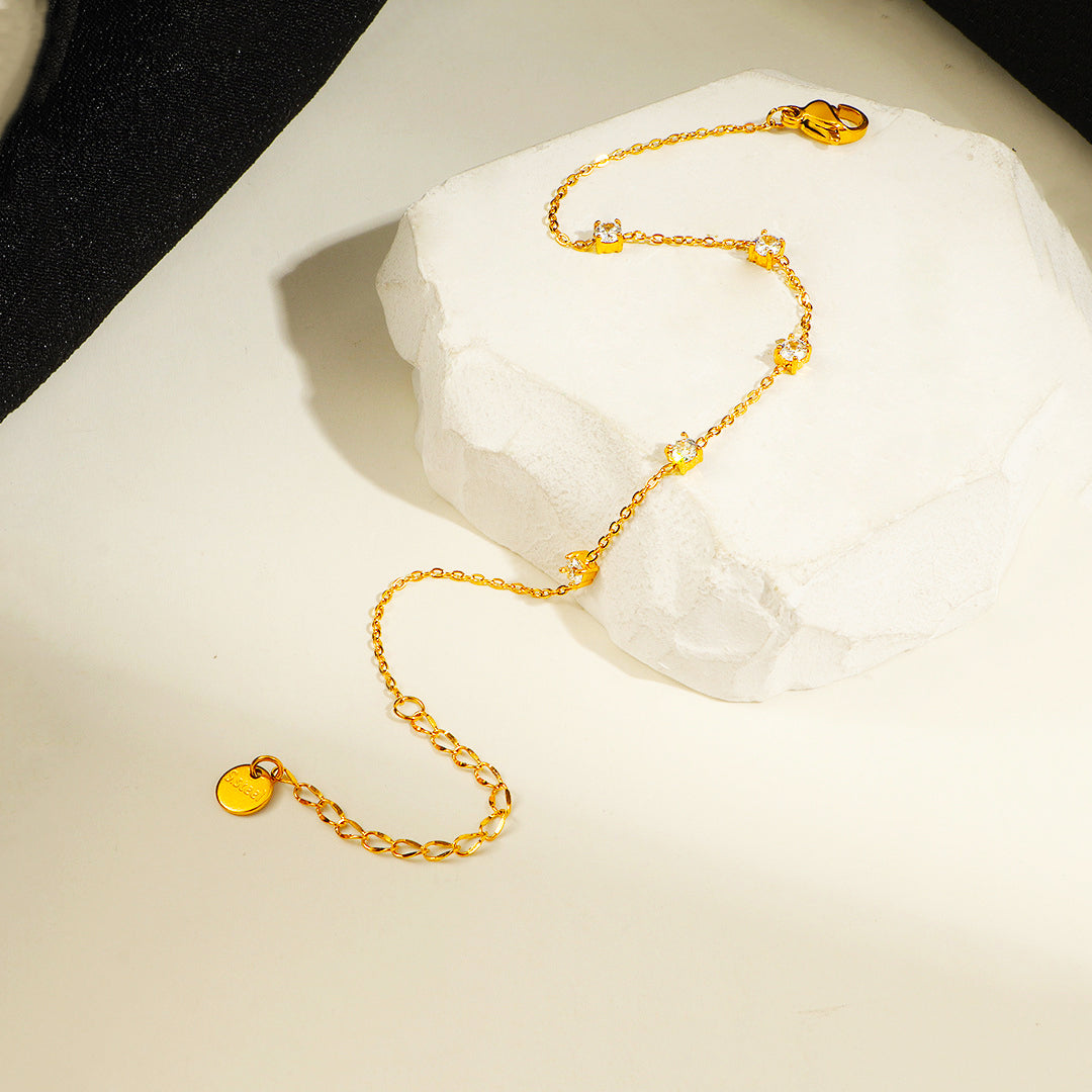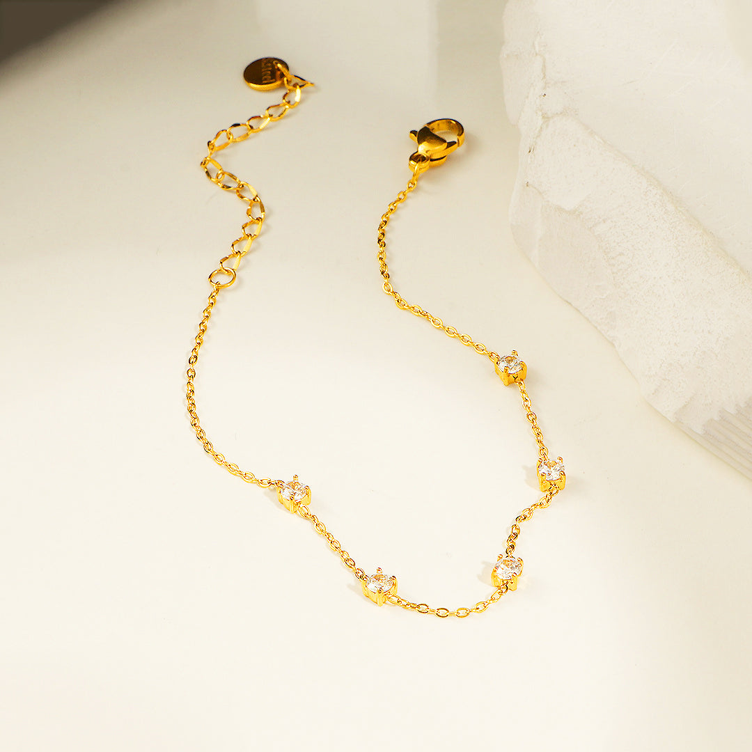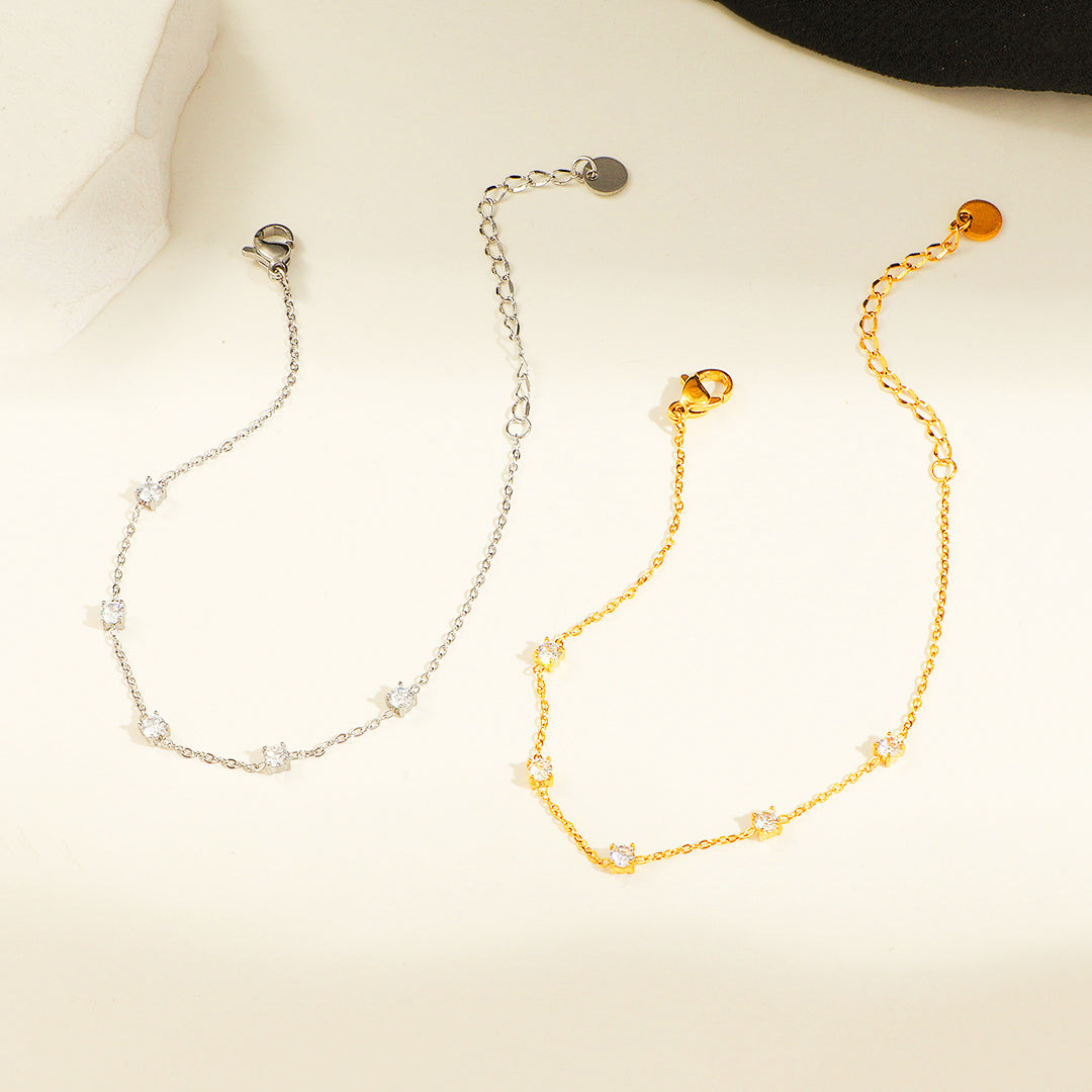 Elevate your everyday elegance with the Luxe6515 Bracelet, a beautifully dainty piece designed to sparkle with understated luxury. Featuring evenly spaced AAAAA zircon stones that catch the light from every angle, this bracelet exudes a refined brilliance while maintaining a minimalist charm. The sleek stainless steel chain—finished with five layers of premium electroplating—ensures exceptional shine and long-lasting resilience, making it perfect for daily wear.