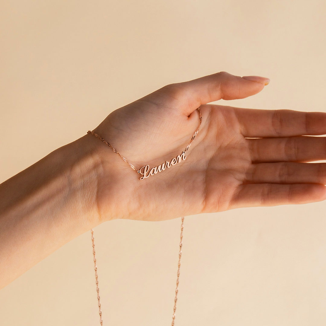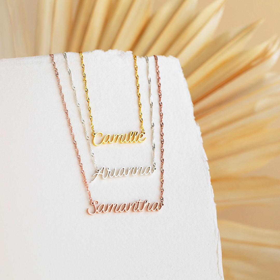 With a fully customizable nameplate, you can create a piece that reflects your personality, celebrates a loved one, or carries a word close to your heart. Available in gold, rose gold, and silver finishes, it’s versatile enough for every style and occasion.