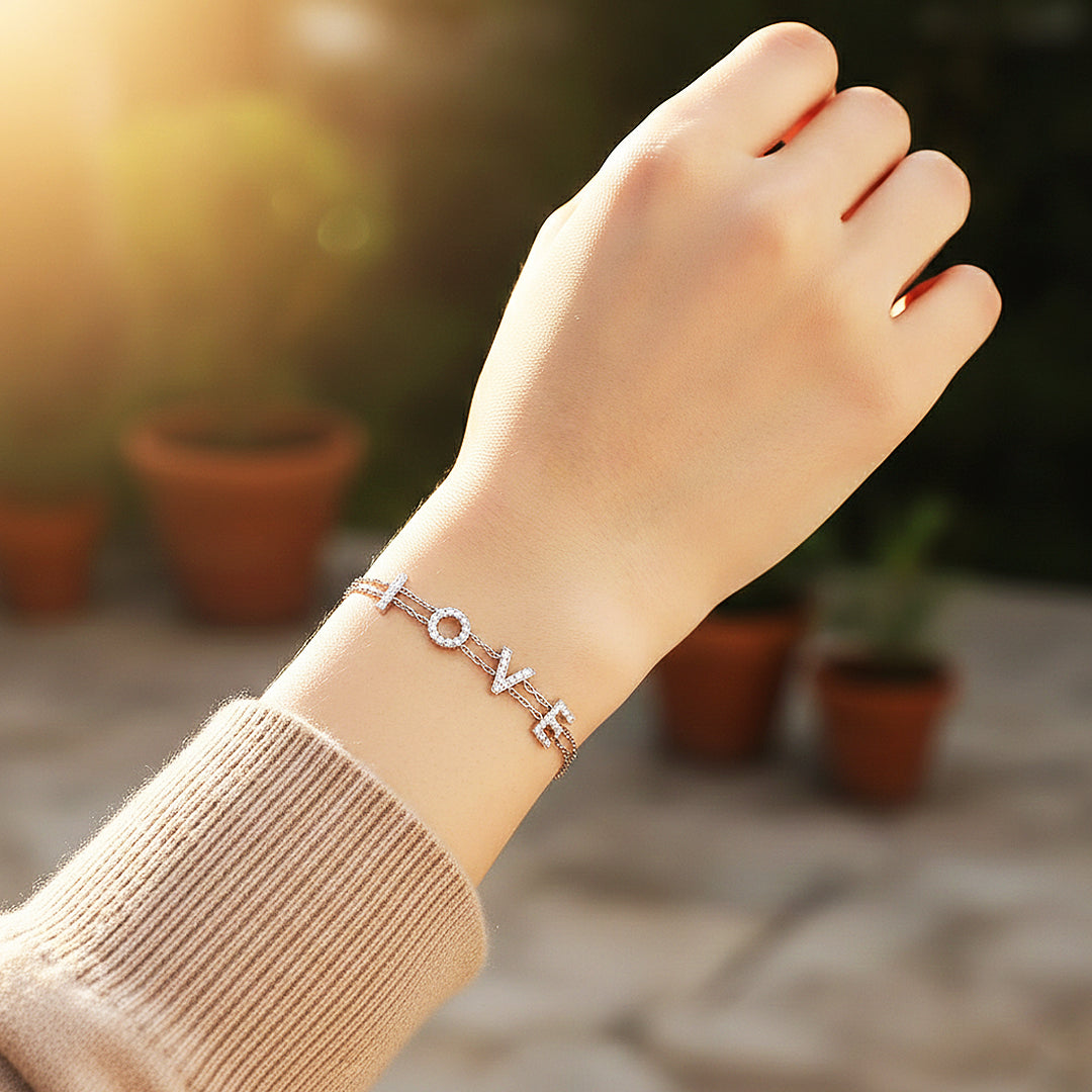 The graceful double-loop side accents, adorned with shimmering micro-set stones, flow seamlessly into an adjustable chain that drapes elegantly across the wrist. Crafted in premium 925 Sterling Silver and finished with five layers of electroplating, this bracelet offers enduring shine, strength, and comfort. Emerald Radiance is designed for the woman who appreciates clean lines, architectural beauty, and uncompromising brilliance — a timeless piece that captures attention with every movement.