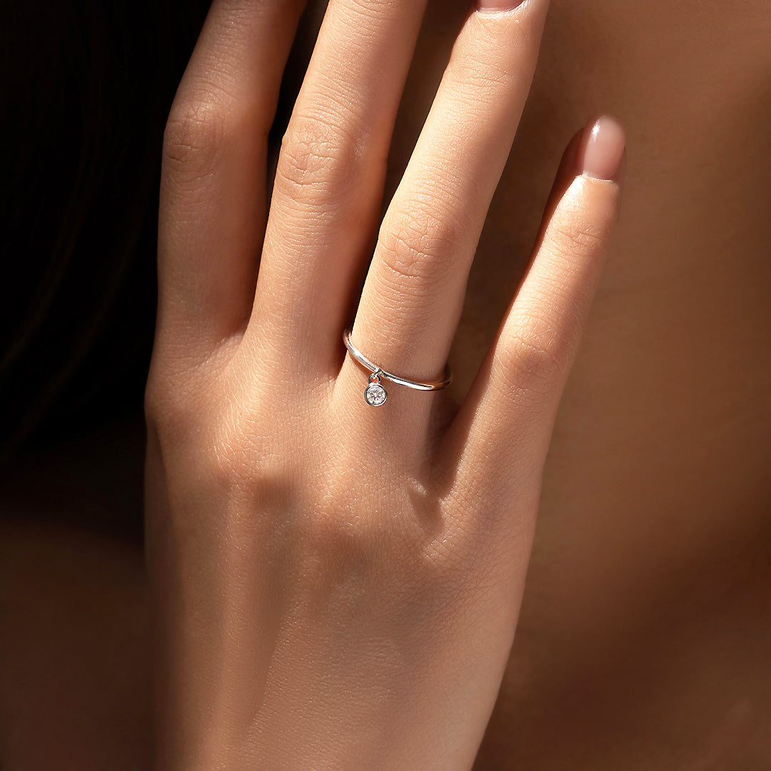 The subtle movement of the stone enhances its fire and brilliance, giving the ring a playful charm that remains timeless and sophisticated. Perfect as a signature everyday piece or a thoughtful gift, this ring embodies purity, shine, and effortless luxury—making it a must-have addition to your Premium Collection.