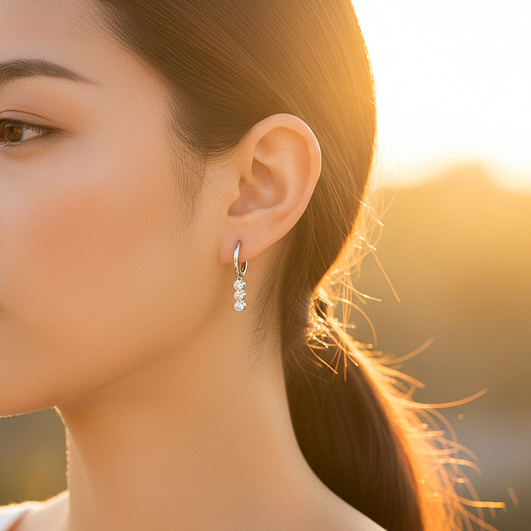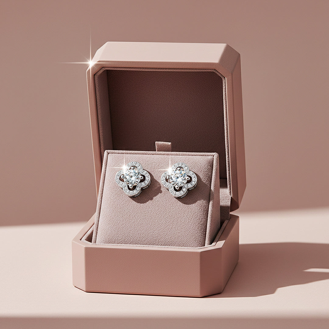 Gracefully sculpted into a refined clover silhouette, the Imperial Clover earrings embody timeless sophistication with a contemporary edge. At the heart of each piece lies a radiant 0.5 carat D-colour, VVS1 Premium Moissanite—meticulously cut to maximise fire, brilliance, and light performance. The harmonious proportions and precise setting allow every facet to shimmer with extraordinary intensity, delivering a luminous sparkle that rivals the finest diamonds. Framed in polished 925 silver and perfected with five layers of electroplating, the finish is impeccably smooth, richly reflective, and crafted to endure.
