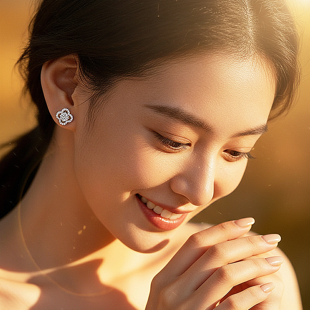 Designed for the woman who appreciates understated opulence, these earrings offer a statement of quiet power and prestige. The symmetrical clover form symbolises elegance and fortune, while the diamond-like radiance elevates every look—from refined daytime ensembles to formal evening affairs. Hypoallergenic and tarnish-resistant, they promise lasting beauty without compromise. A masterpiece of brilliance and craftsmanship, this pair is not merely an accessory—it is an investment in distinction, designed to captivate at every glance.