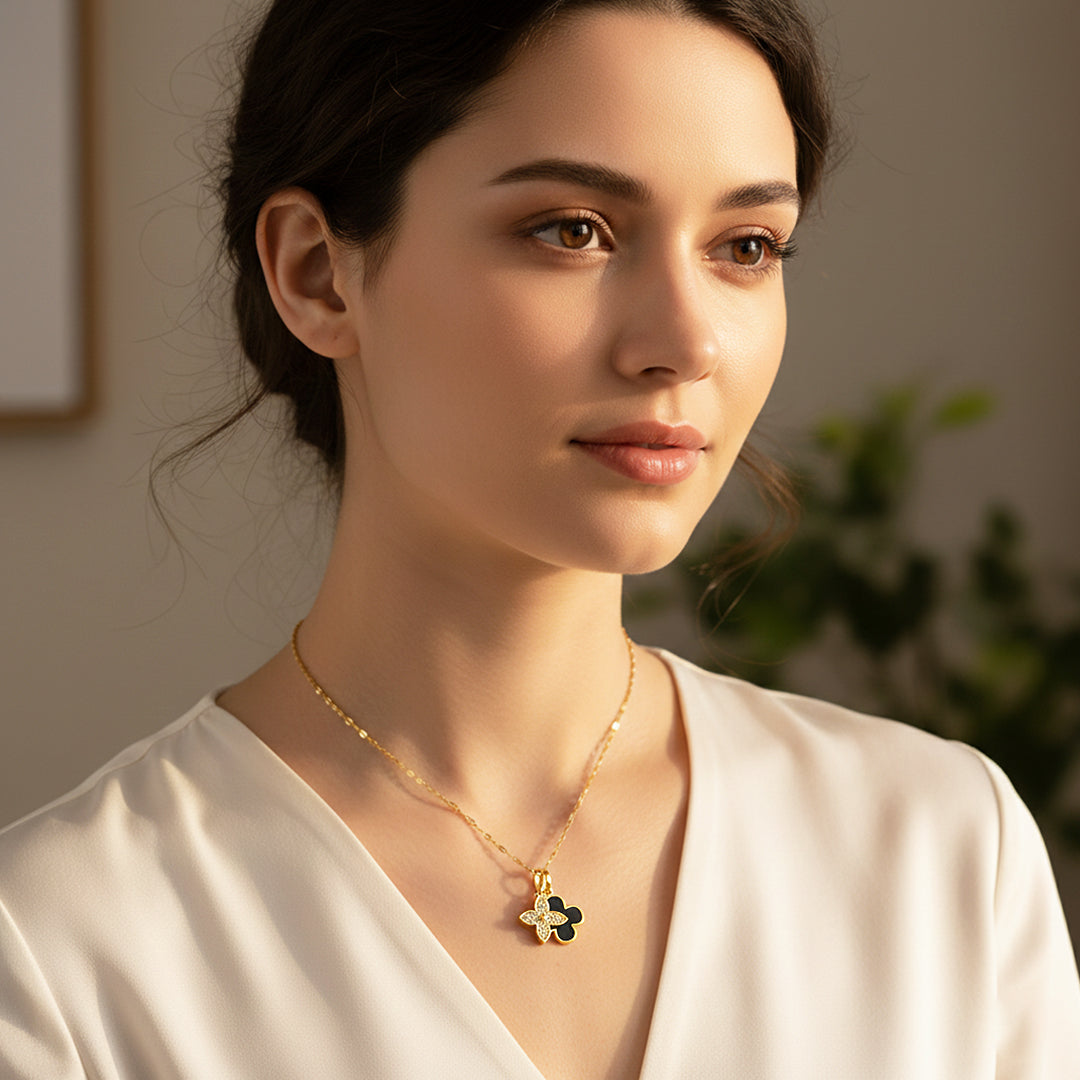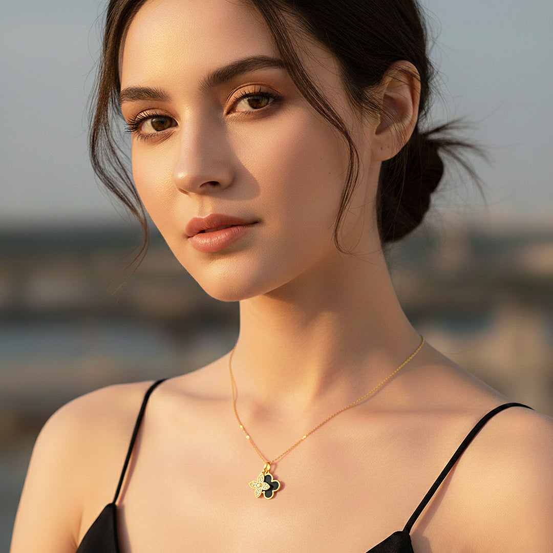 Luxe4440 is a refined statement of elegance, designed to capture attention with its exquisite charm and radiant sparkle. Featuring a beautifully crafted motif adorned with premium AAAAAA zircon, this necklace reflects light effortlessly, creating a luxurious glow that elevates any look. The gold-plated finish adds warmth and sophistication, while the fine chain ensures a graceful drape along the neckline.