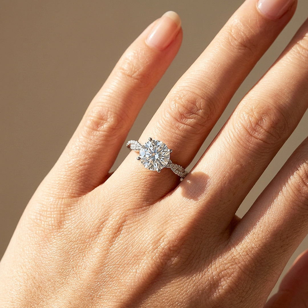 Twisted Pavé Round Solitaire Women Ring | 925 Sterling Silver | PRM7146