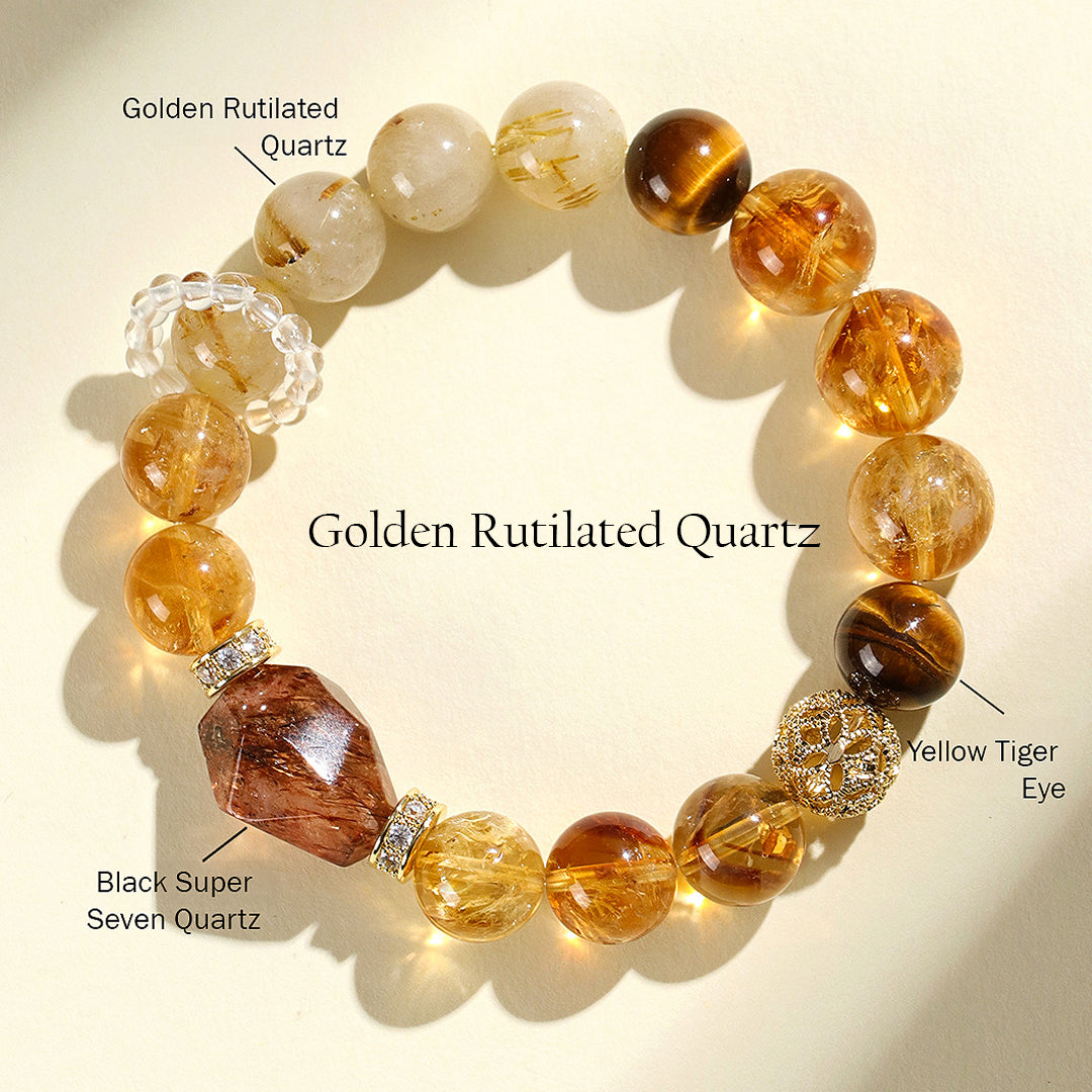 Radiate confidence and prosperity with the C159 Golden Rutilated Quartz Bracelet, a powerful blend of energizing crystals designed for success and protection.