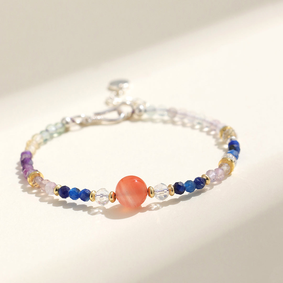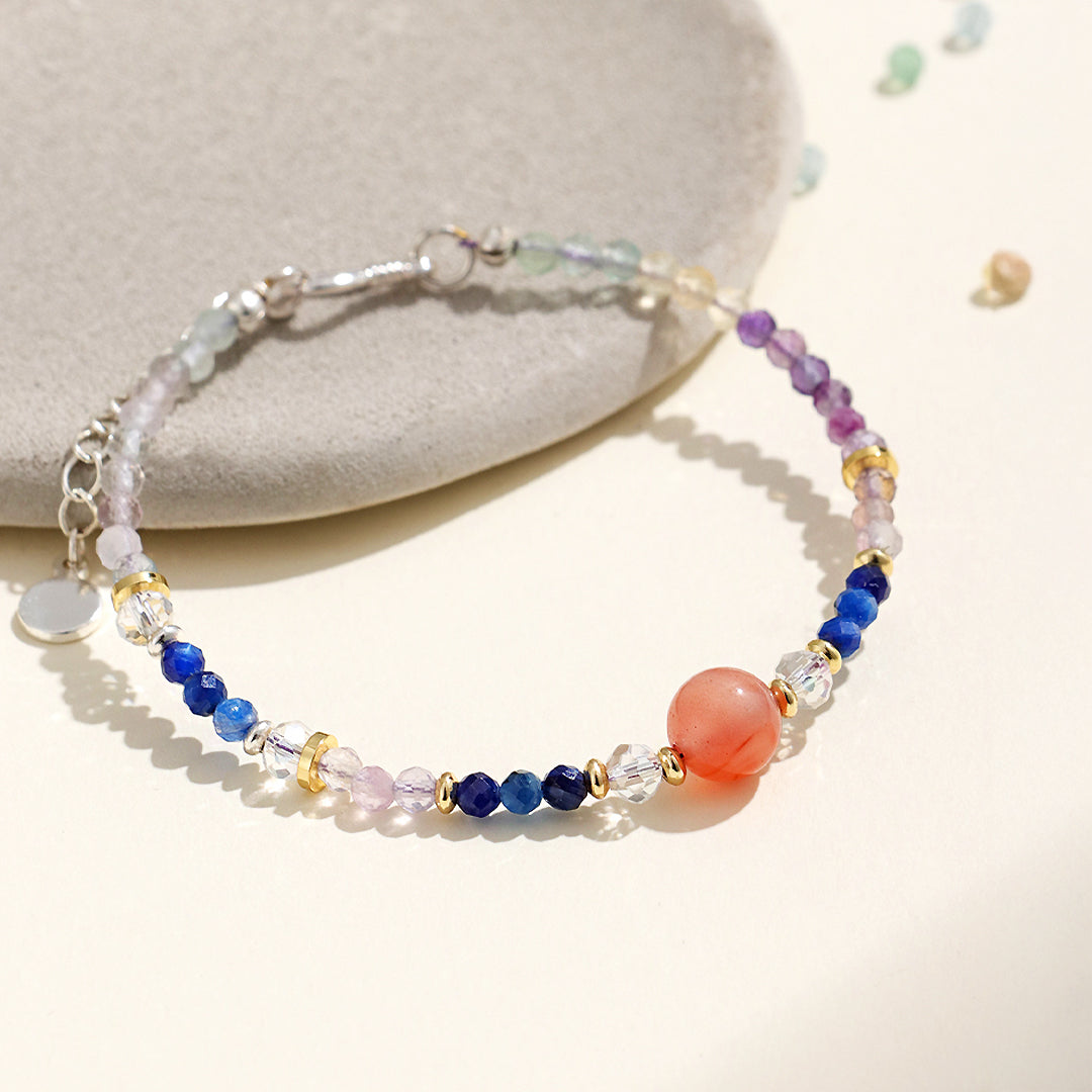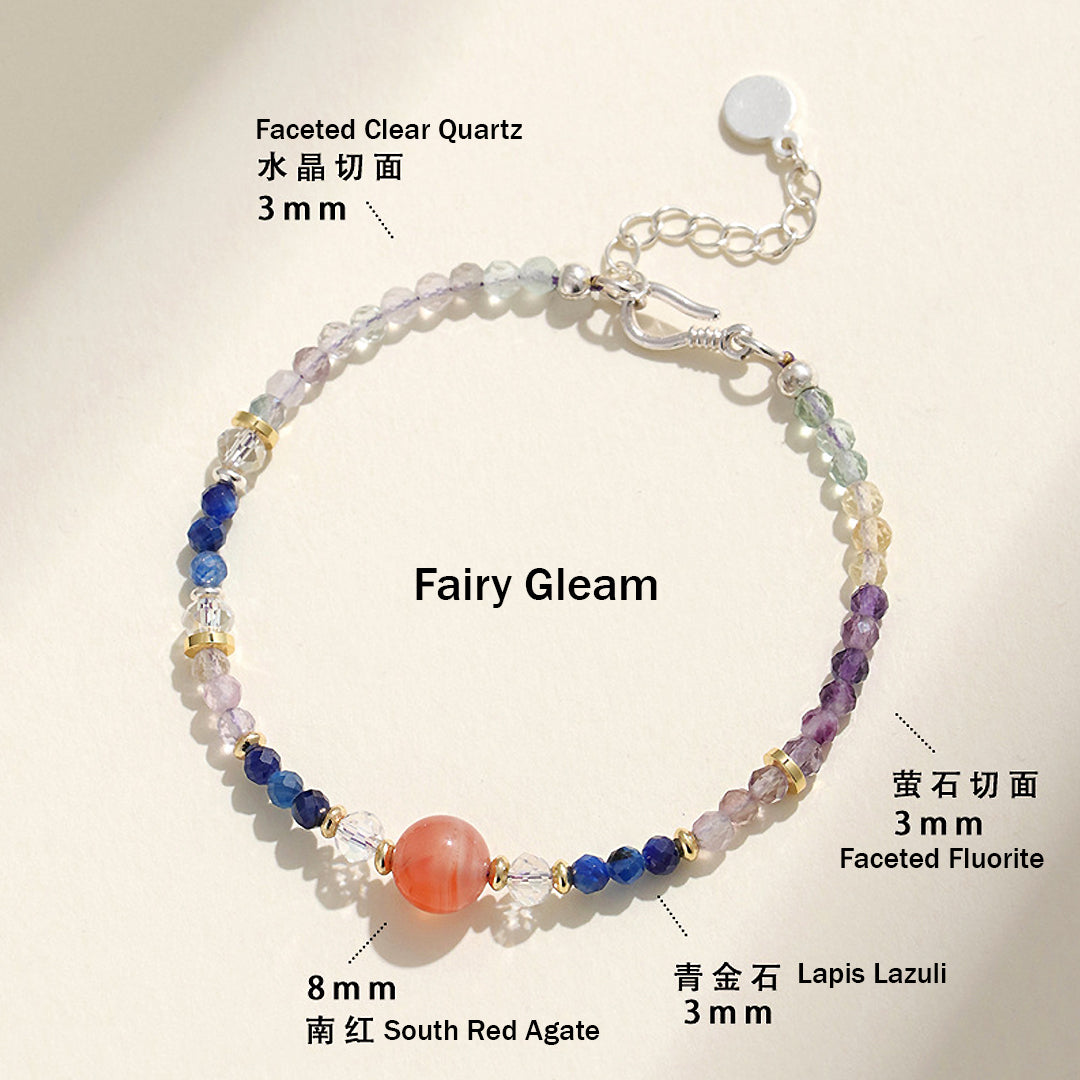 Delicate yet radiant, the Fairy Gleam bracelet captures the ethereal beauty of nature's most enchanting crystals. A soft blend of calming hues and shimmering faceted gems brings lightness, clarity, and graceful energy to your wrist.