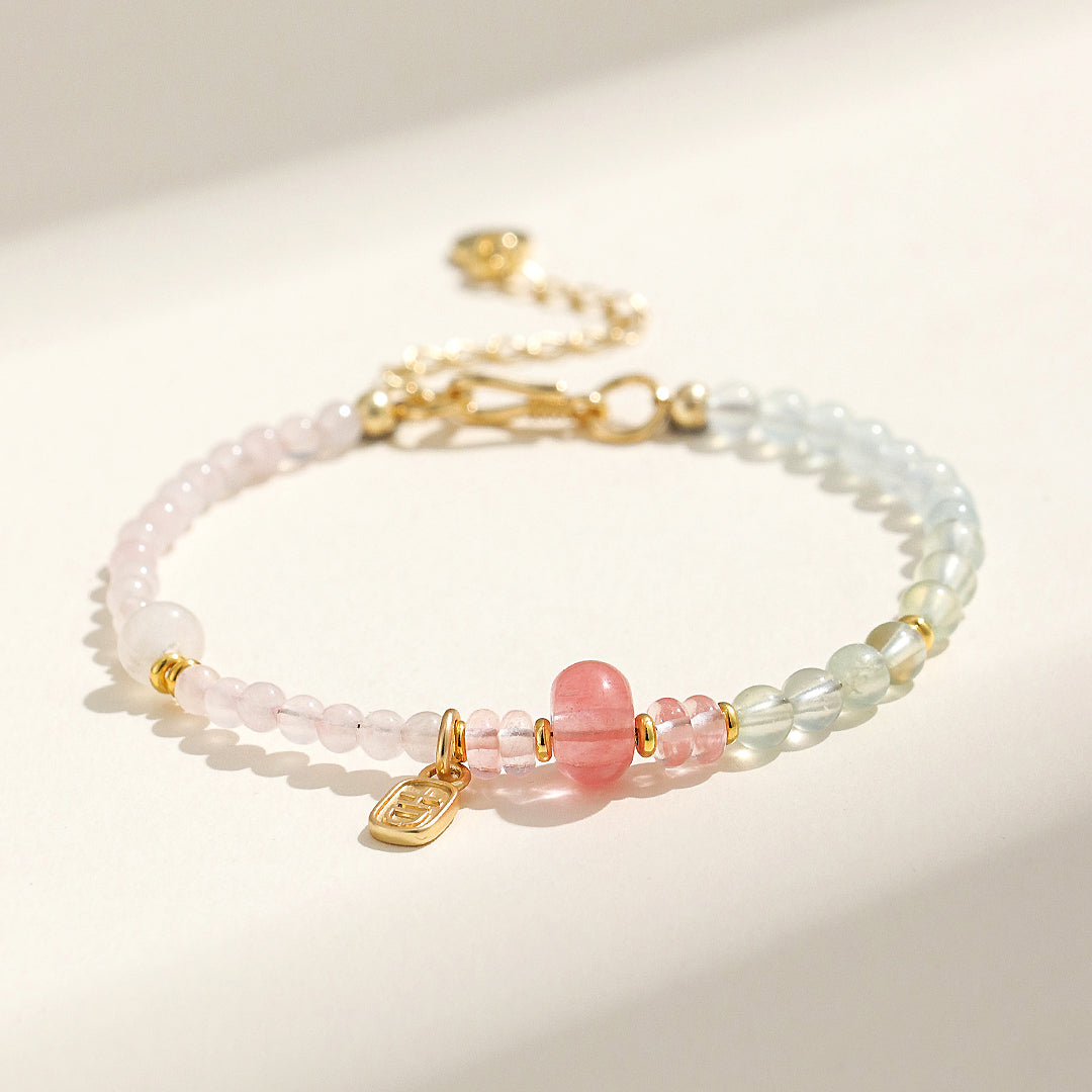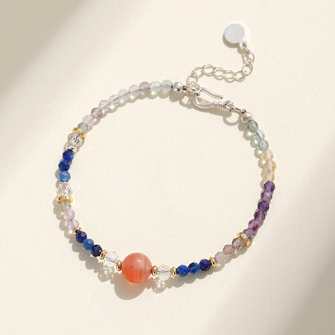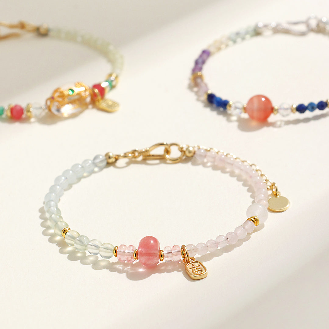 Delicate yet radiant, the Fairy Gleam bracelet captures the ethereal beauty of nature's most enchanting crystals. A soft blend of calming hues and shimmering faceted gems brings lightness, clarity, and graceful energy to your wrist.