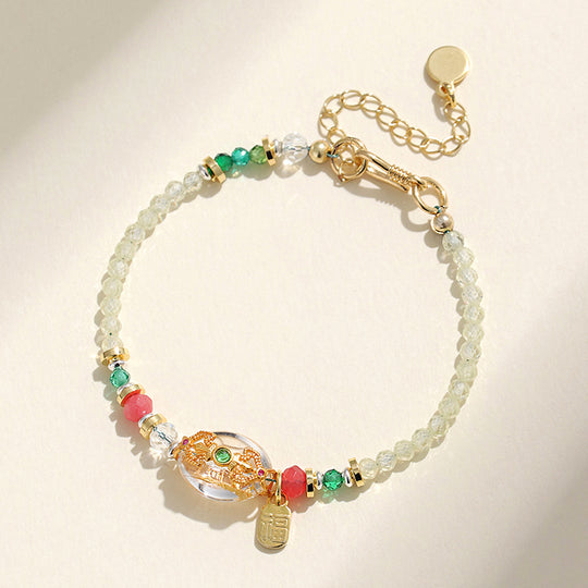 Finished with a charming gold charm engraved with "福" (fortune), this bracelet is a subtle yet powerful accessory for attracting peace and blessings.