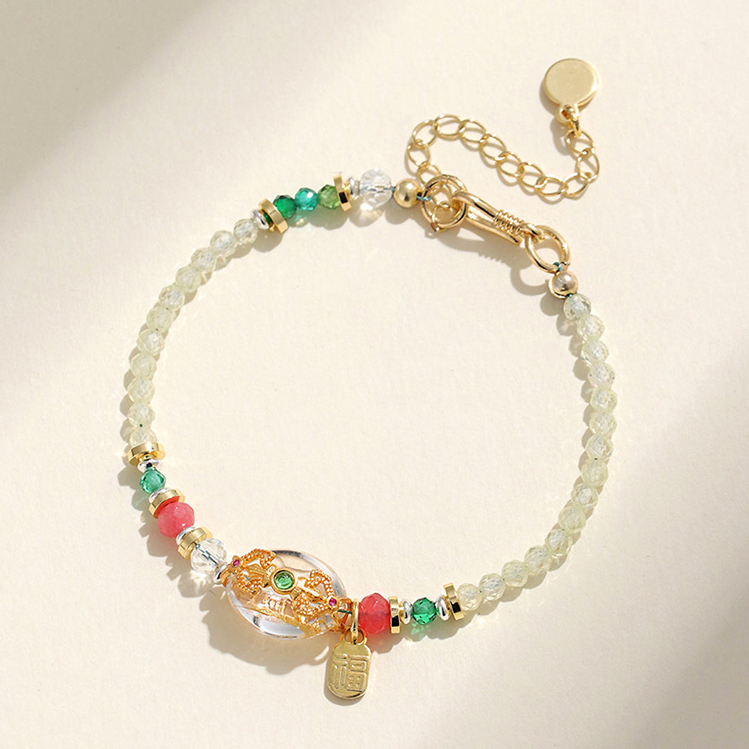Main Charm: 14×10mm gold-plated dragon charm with Chinese “福” (Blessing) pendant