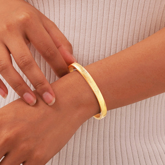 • Superior Gold Plating with 5-Layer Protection: Our advanced electroplating process creates an incredibly robust and long-lasting gold finish. Each of the five layers adds a defense against tarnishing, fading, and discoloration, ensuring your bangle maintains its radiant glow for years to come.