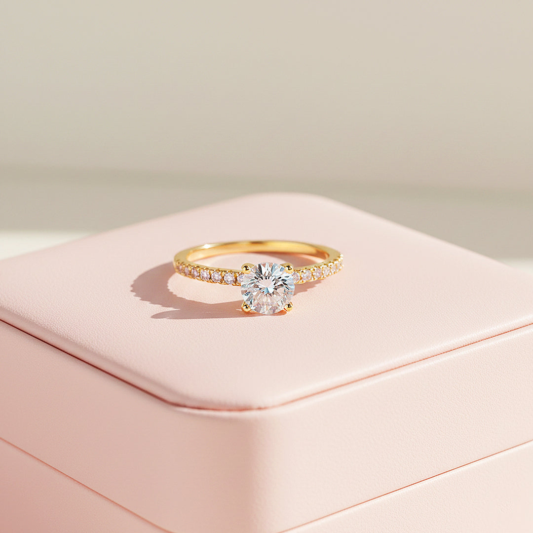 Designed for effortless elegance, Petite Promise features a refined solitaire that sparkles with quiet confidence. The perfectly proportioned 0.5-carat centre stone is precision-cut to maximise brilliance, catching the light with every movement. Set on a slim, pavé-accented band, the design feels delicate yet luminous—ideal for those who love understated luxury with a timeless appeal.