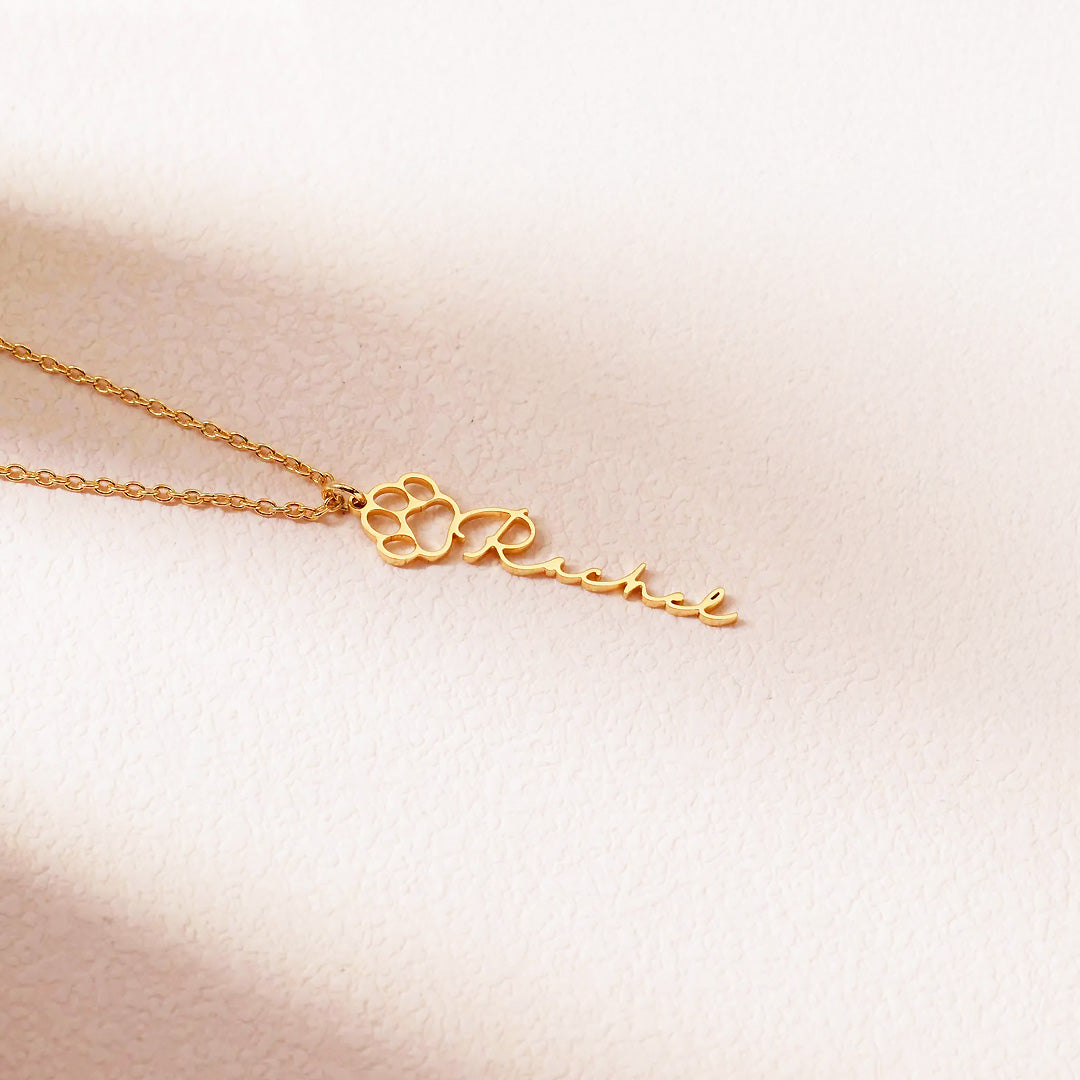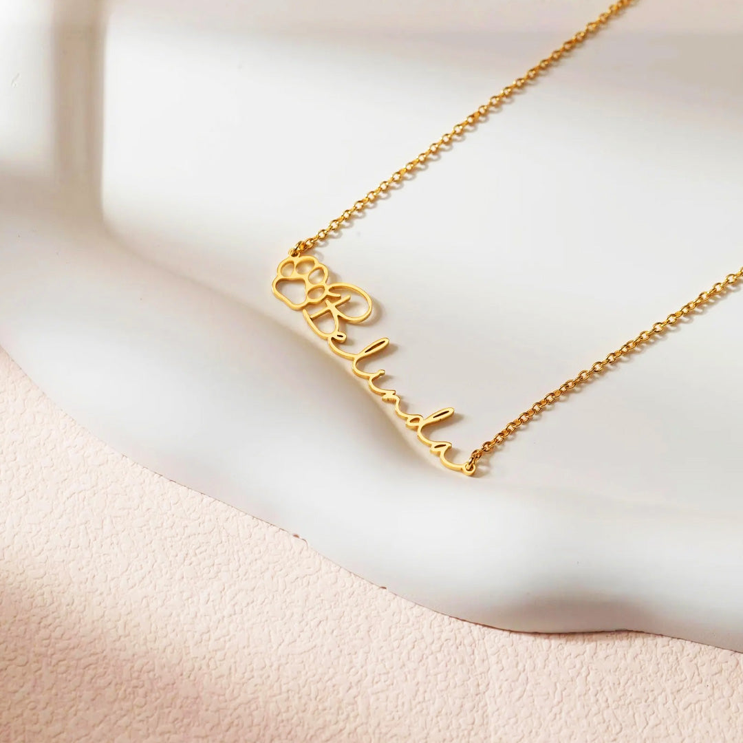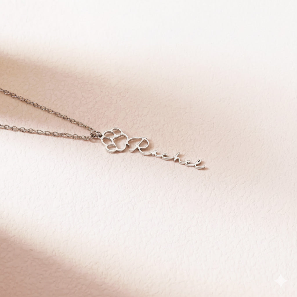 A perfect blend of love and loyalty, the Luna - 1024 Necklace is designed for those who carry their furry friends close to their heart. Crafted in premium stainless steel, this necklace features a delicate name design accented with a charming paw motif, making it the ultimate keepsake for pet lovers.
