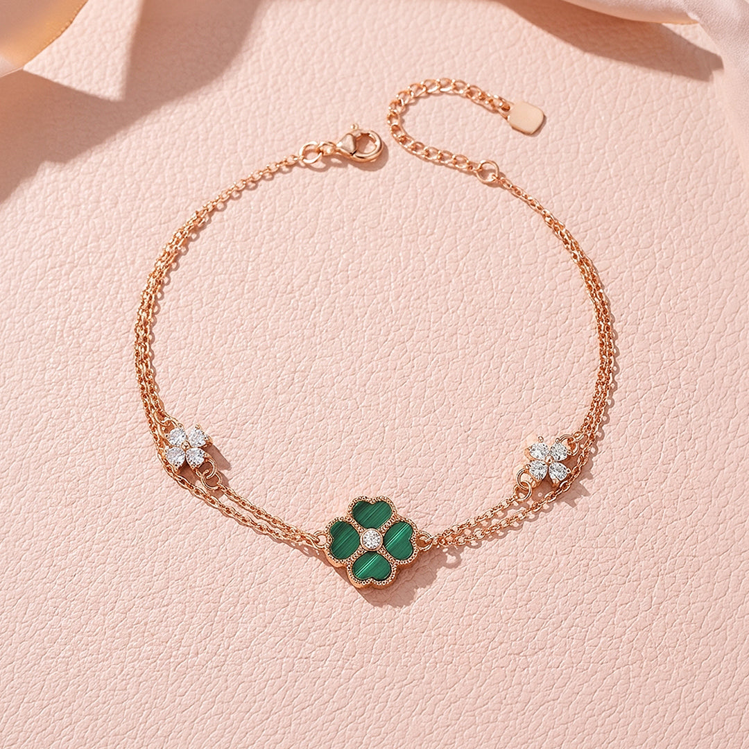 Malachite Clover Double Layer Chain Bracelet | Luxe6614