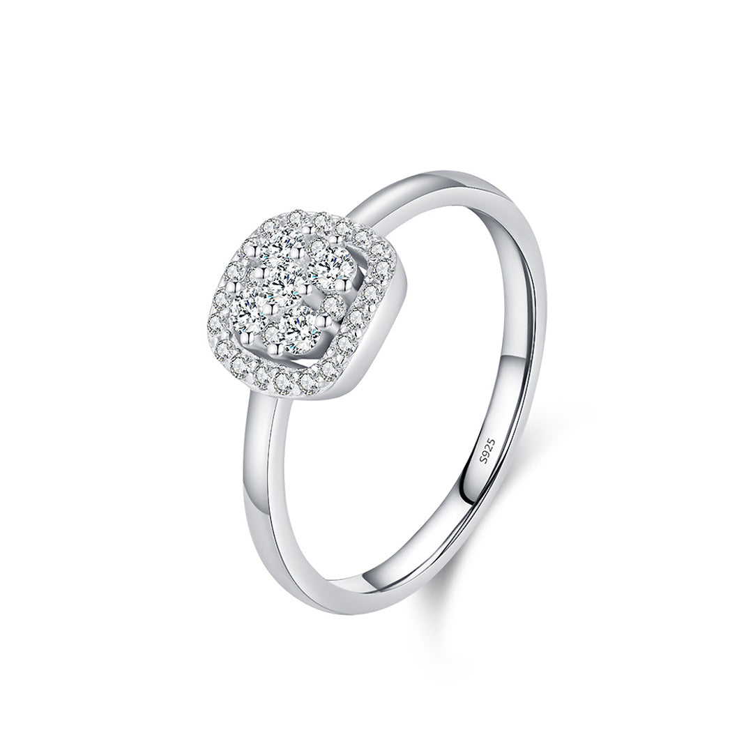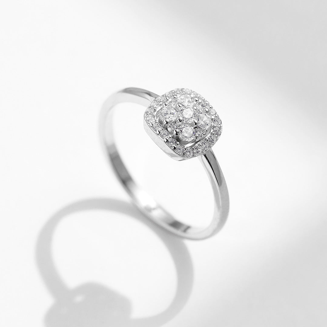 The Veyra Ring – Prm7122 is a statement of elegance and sophistication, designed for the woman who treasures timeless beauty with a modern edge. Its square-shaped cluster setting features an array of meticulously hand-set stones that shimmer with diamond-like fire, creating a dazzling focal point that catches the eye from every angle. The brilliance of D colour VVS1 clarity stones radiates with exceptional sparkle, while the smooth 925 sterling silver band adds a touch of refinement and durability. Perfect for both everyday wear and special occasions, this ring embodies luxury, grace, and a luminous charm that ensures you stand out effortlessly.