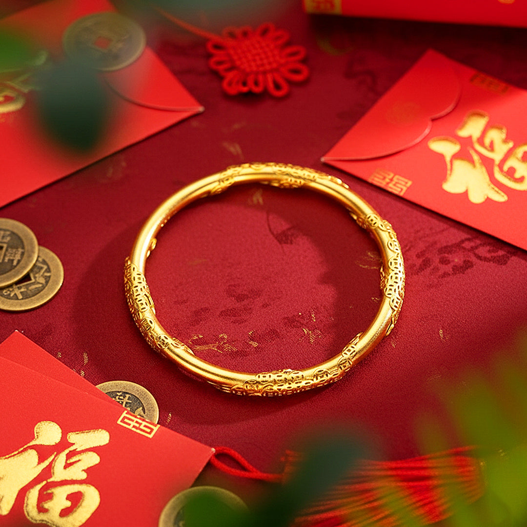 The Luxe6375 – Gold Coin Prosperity Bangle is a timeless statement of elegance, abundance, and refined craftsmanship. Inspired by traditional gold coin motifs symbolising prosperity and good fortune, this bangle features delicately sculpted details that catch the light with a soft, luxurious glow. Finished with five layers of premium electroplating, it offers exceptional durability and a rich gold lustre that looks and feels indulgent.