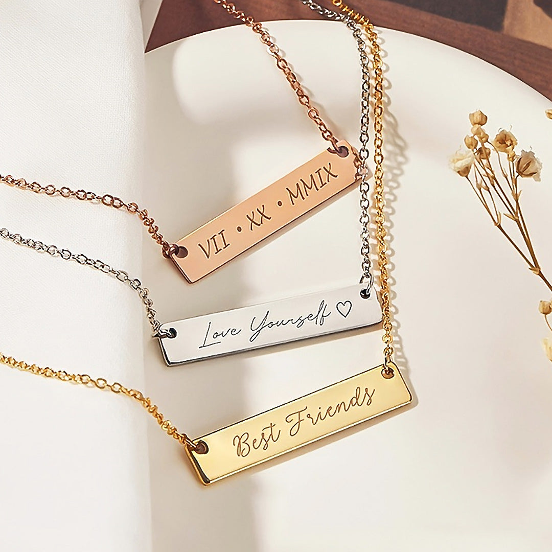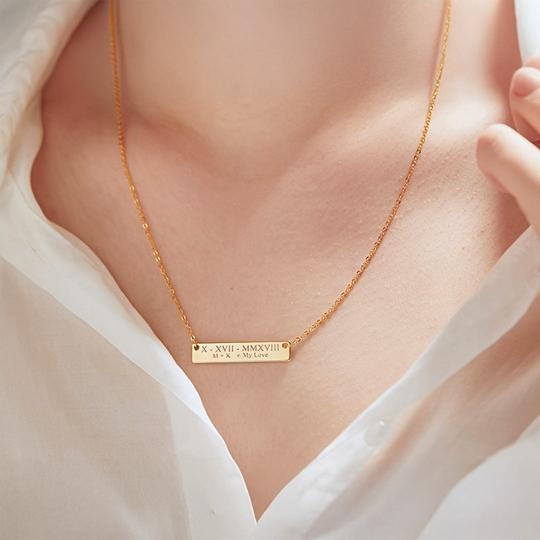Elegant and meaningful, the Nova - 1025 Necklace is a timeless piece designed to celebrate what matters most to you. Featuring a sleek bar pendant, this necklace can be customised with names, dates, or words that hold special meaning. Whether worn daily as a personal keepsake or gifted to a loved one, it’s the perfect blend of style and sentiment.