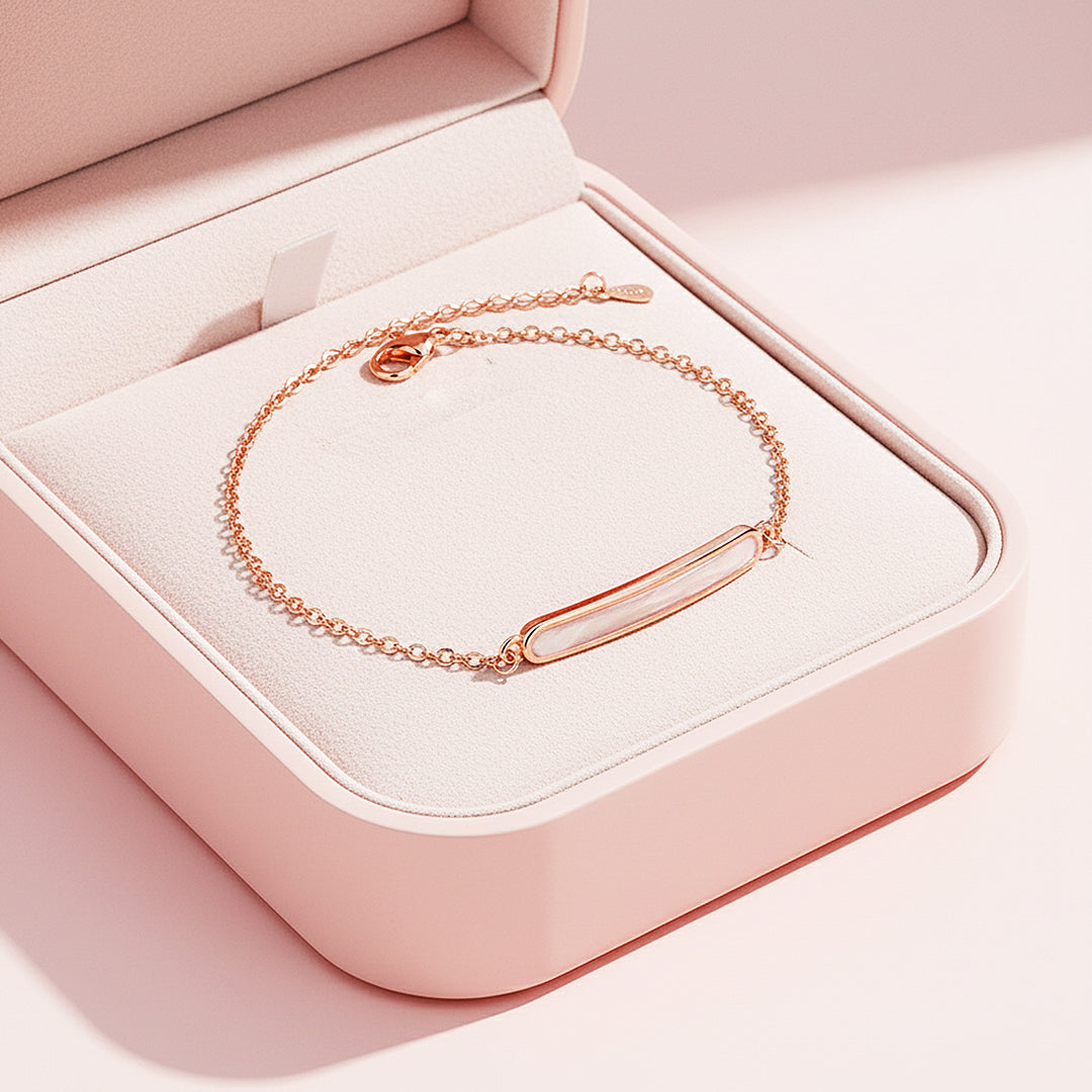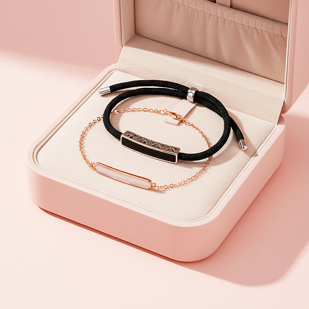 • 玫瑰金镀情侣手链。